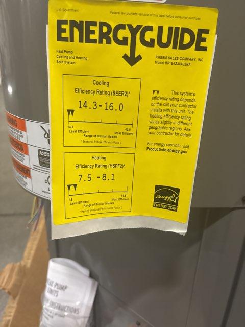 2.5 Ton Two Stage Split-System Heat Pump, Circuit Voltage: 208-230, Hertz: 60, Phase: 1, Department of Energy Guide SEER2: 15.2, Stage: Two, Refrigerant: R410A, Connection Size: 3/8"X3/4", Connection Type: Sweat, Factory Charge: 120 oz, Type: Air, Dimensions: 35''H x 33-3/4''W x 33-3/4''D, Weight: 202 lbs