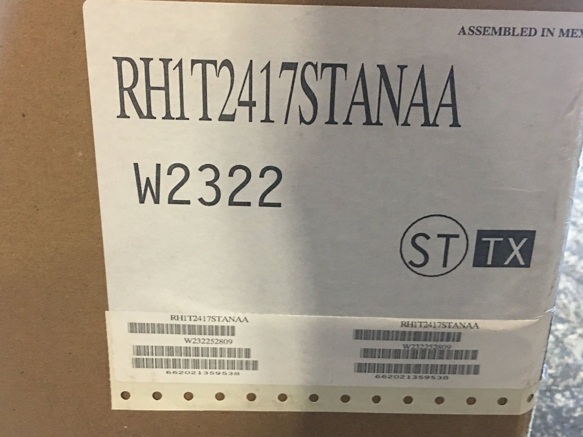 Manufacturer Item # :RH1T2417STANAA
