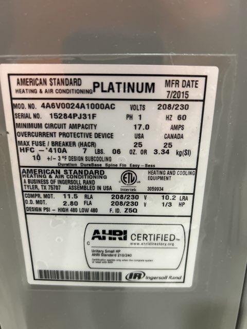 3/8"X5/8", Connection Type: Sweat, Factory Charge: 7 lbs 6 oz, Type: Air, Dimensions: 40-3/4''H x 32-5/8''W x 29-3/4''D, Weight: 204 lbs **Mfg Date: 7/2015**