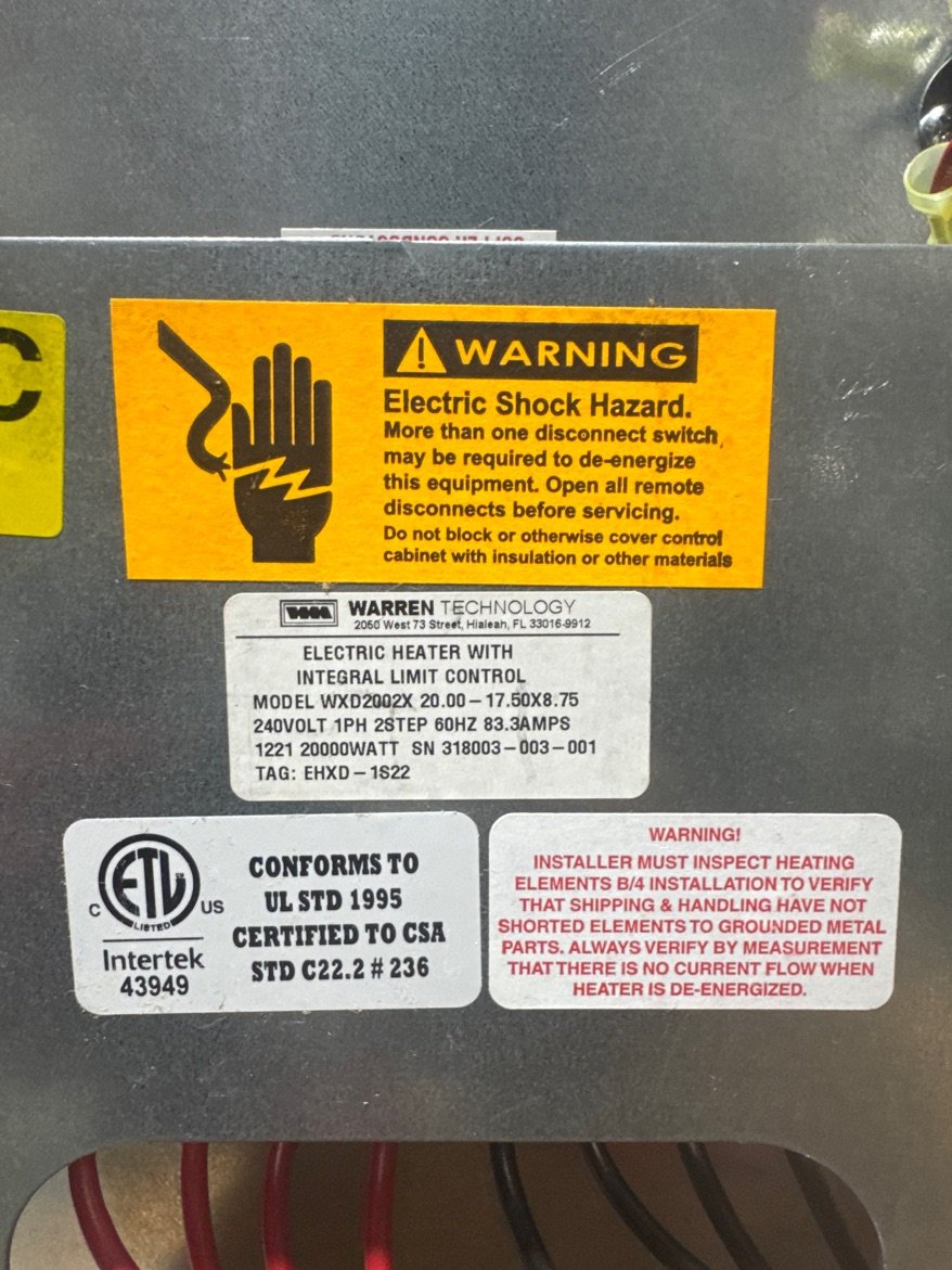 20 KW Electric Heat Strip, Volts: 208/240, Hertz: 60, Phase: 1, Kilowatts: 20 **For use with: 4-5 Ton of DBC, DBH, DRC, DRH, DFC, DFH Rooftop Model Packaged Units**
