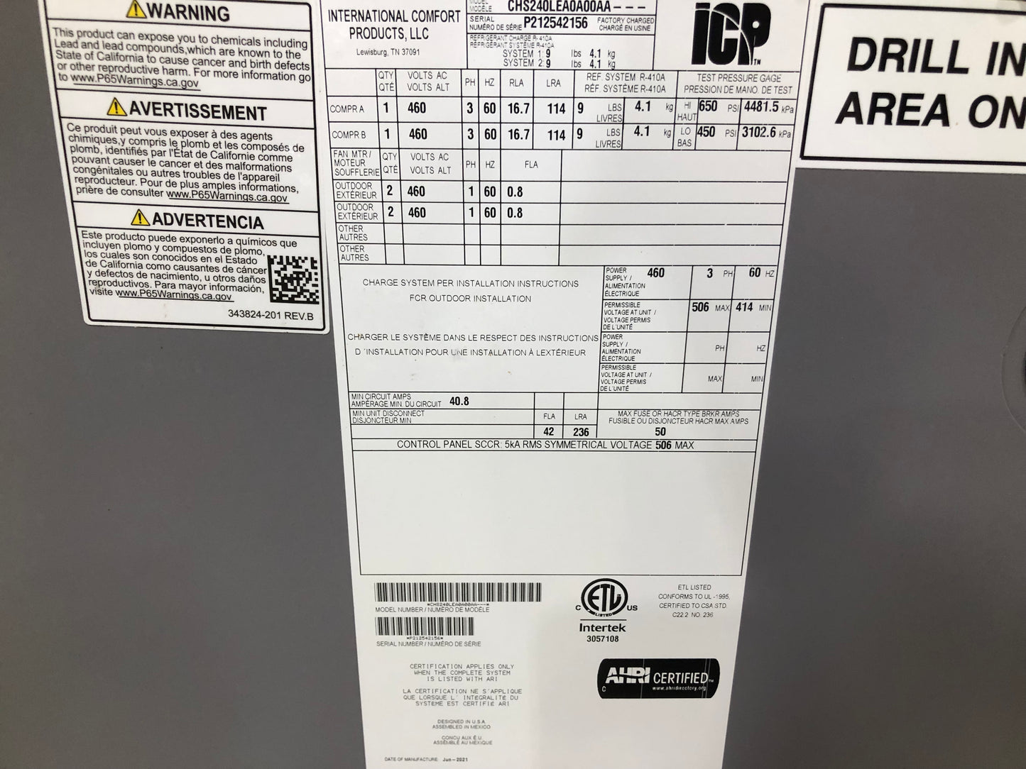 20 Ton Split System Commercial Heat Pump, Volts: 460, Hertz: 60, Phase: 3, SEER: 13, EER: 10.7, Stage: Two, Refrigerant: R-410A, Connection Size: 1-3/8" X 1/2", Connection Type: Sweat, Factory Charge: 18 Lbs, Type: Air Source, Dimensions: H:50" W:65" L:85", Weight: 1050, Bulk Packaging, Made In Mexico This Unit Has Been Verified To Be Holding A Charge 7/29/2023