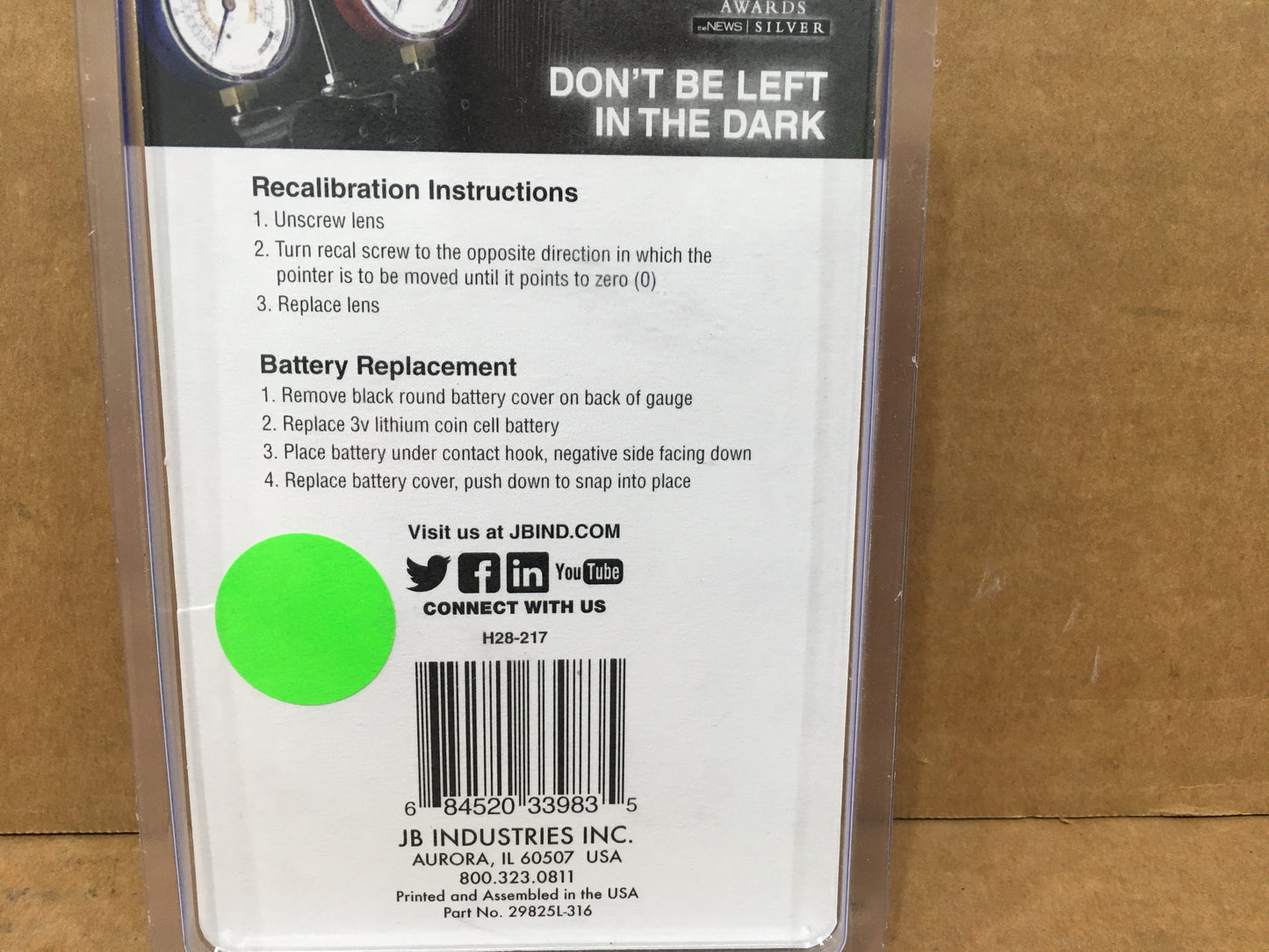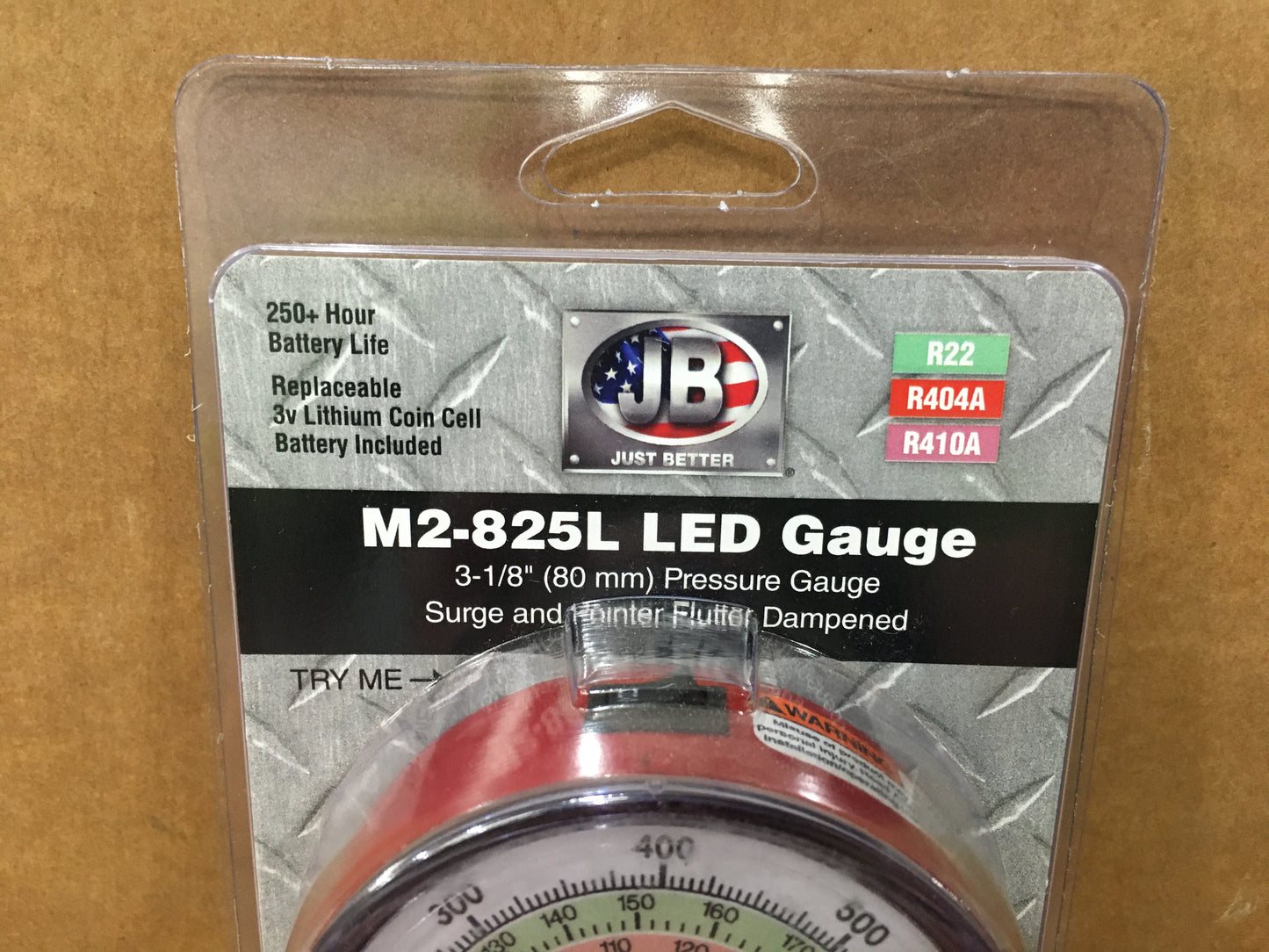 31/8" Led Pressure Gauge, 0-800 Psi, Rated For R-22, R404A, R-410A, Replaceable 250+ Hour Battery Life, Surge And Pointer Flutter Dampened, In Blister Packaging, Made in USA