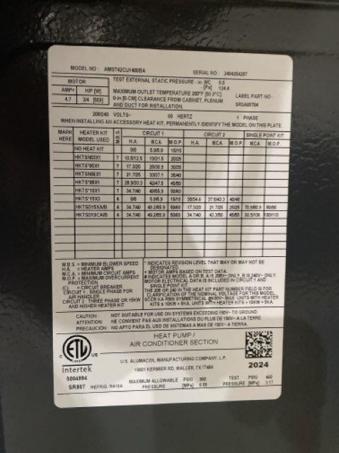 3.5 Ton AC/HP Air Handler, Airflow: Multiposition, Volts: 208-230, Hertz: 60, Phase: 1, CFM: 1495, Refrigerant: R-410A, Motor Type: ECM, Metering Device: TXV, Connection Size: Suction-3/4", Liquid-3/8", Type: Air Source, Dimensions: 53-7/16''H X 21-1/8''W X 21''D, Weight: 153 lbs ***Compatible Heat Kits: HKTSN(03-06)X1, HKTS*(05-10)X1, HKTSD15XA/B, HKTS*15X3, HKTSD19CA/B, WKS (not included)***