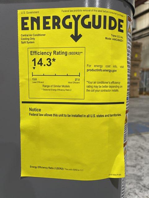 3.5 Ton Single Stage Split-System Air Conditioner, Circuit Voltage: 208-230, Hertz: 60, Phase: 1, Department of Energy Guide SEER2: 14.3, Stage: Single, Refrigerant: R410A, Connection Size: 3/8"X7/8", Connection Type: Sweat, Factory Charge: 6 lbs 6 oz, Type: Air, Dimensions: 36-5/8''H x 34-1/4''W x 34-1/4''D, Weight: 212 lbs