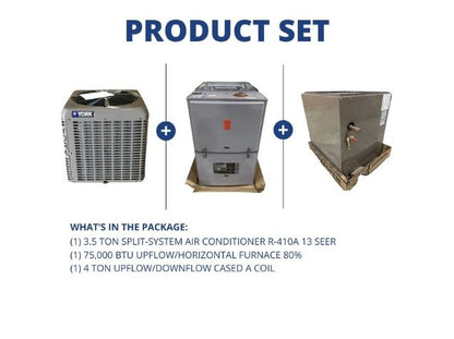 1, CFM: 1785, Stage: Single, Speed: Multi, Motor Type: ECM, BTU Input: 75000, BTU Output: 61000, Dimensions: 34"H X 21"W X 28-1/32"D LP Kit: RXGJ-FP15 (Not Included) **Unit includes a Manufacture Warranty through June of 2029, No Registration Required** Paired with 4 Ton Cased A Coil, Airflow: Upflow/Downflow, CFM: 1600, Metering Device: Piston, Connection Type: Sweat, Refrigerant: R410A, Connection Size: 3/8"X7/8", Drain Pan: Plastic, Dimensions: 24''H X 21''W X 21-1/2''D, Weight: 62 lbs