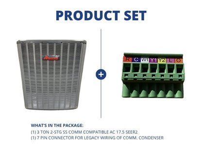 39-1/2''H x 35-1/2''W x 35-1/2''D, Weight: 216 lbs **Compatible With Comfortbridge Technology Units** ***Unit includes a Manufacture Warranty, register your unit with the Manufacturer for Details*** Paired with 7 Pin Connector, Used for Legacy Wiring of Communicating Goodman Condensers Such as GSXC16–18 and GSZC16–18. Required When The Outdoor Unit Is Paired With Non-Communicating Indoor Units. Dimensions: 1/2" H x 1-1/2" W x 2" D, Weight: 0.02 lbs