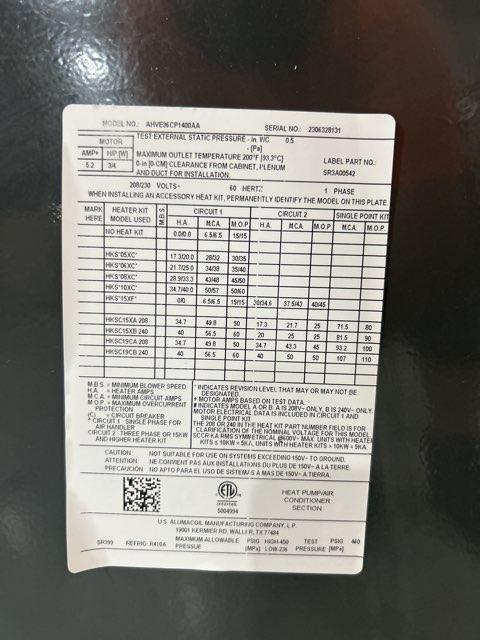 60, Phase: 1, Department of Energy Guide SEER: 16.5, Stage: Inverter, Refrigerant: R410A, Connection Size: 3/8" X 7/8", Connection Type: Sweat, Factory Charge: 85 oz, Type: Air, Dimensions: 27-3/8''H x 36-5/8''W x 13-3/4''D, Weight: 133 lbs Paired with: 3 Ton AC/HP Communicating Air Handler, Airflow: Multiposition, Volts: 208-230, Hertz: 60, Phase: 1, CFM: 1260, Refrigerant: R-410A, Motor Type: ECM, Metering Device: EXV, Connection Size: