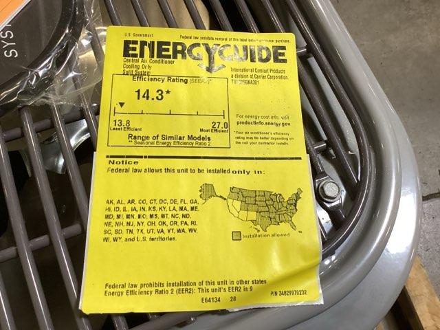 3 Ton Variable Speed Split-System Communicating Compatible Air Conditioner, Circuit Voltage: 208-230, Hertz: 60, Phase: 1, Department of Energy Guide SEER: 19, Speed: Variable, Refrigerant: R410A, Connection Size: 3/8"X3/4", Connection Type: Sweat, Factory Charge: 6 lbs, Type: Air, Dimensions: 38-1/2''H x 23-1/8''W x 23-1/8''D, Weight: 152 lbs **Compatible with Ion Communicating Units** ***Unit includes a Manufacture Warranty, register your unit with the Manufacturer for details***