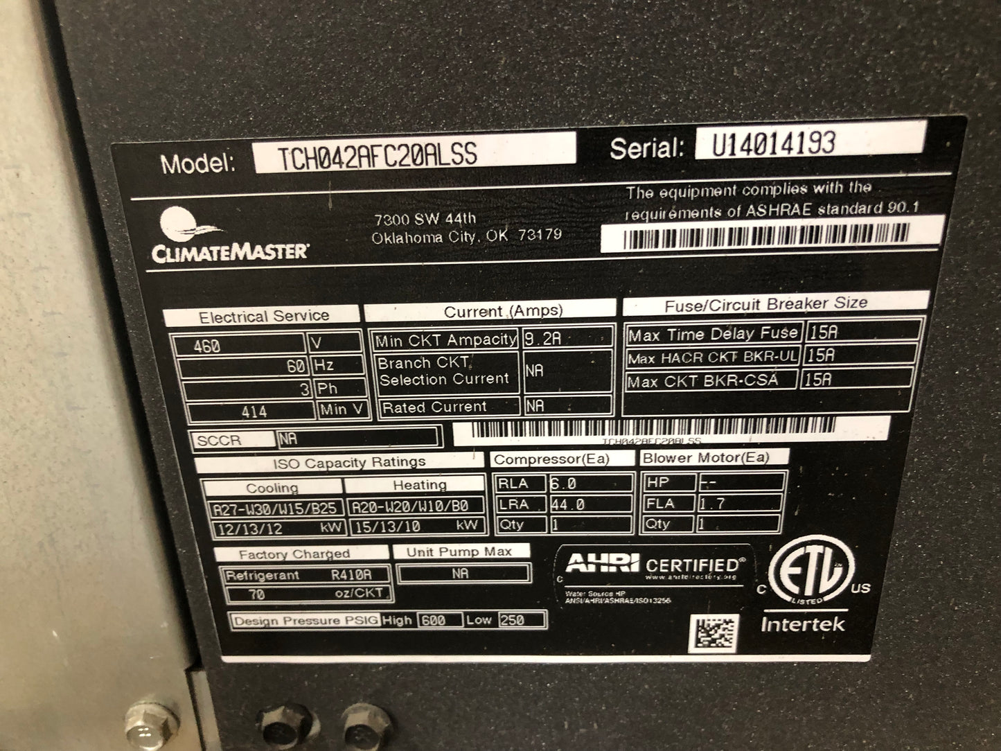 • 3-1/2 TON "TC" SERIES HORIZONTAL GEOTHERMAL INDOOR HEAT PUMP WITH PSC MOTOR, 13.1-19.6 EER 460/60/3 R-410A