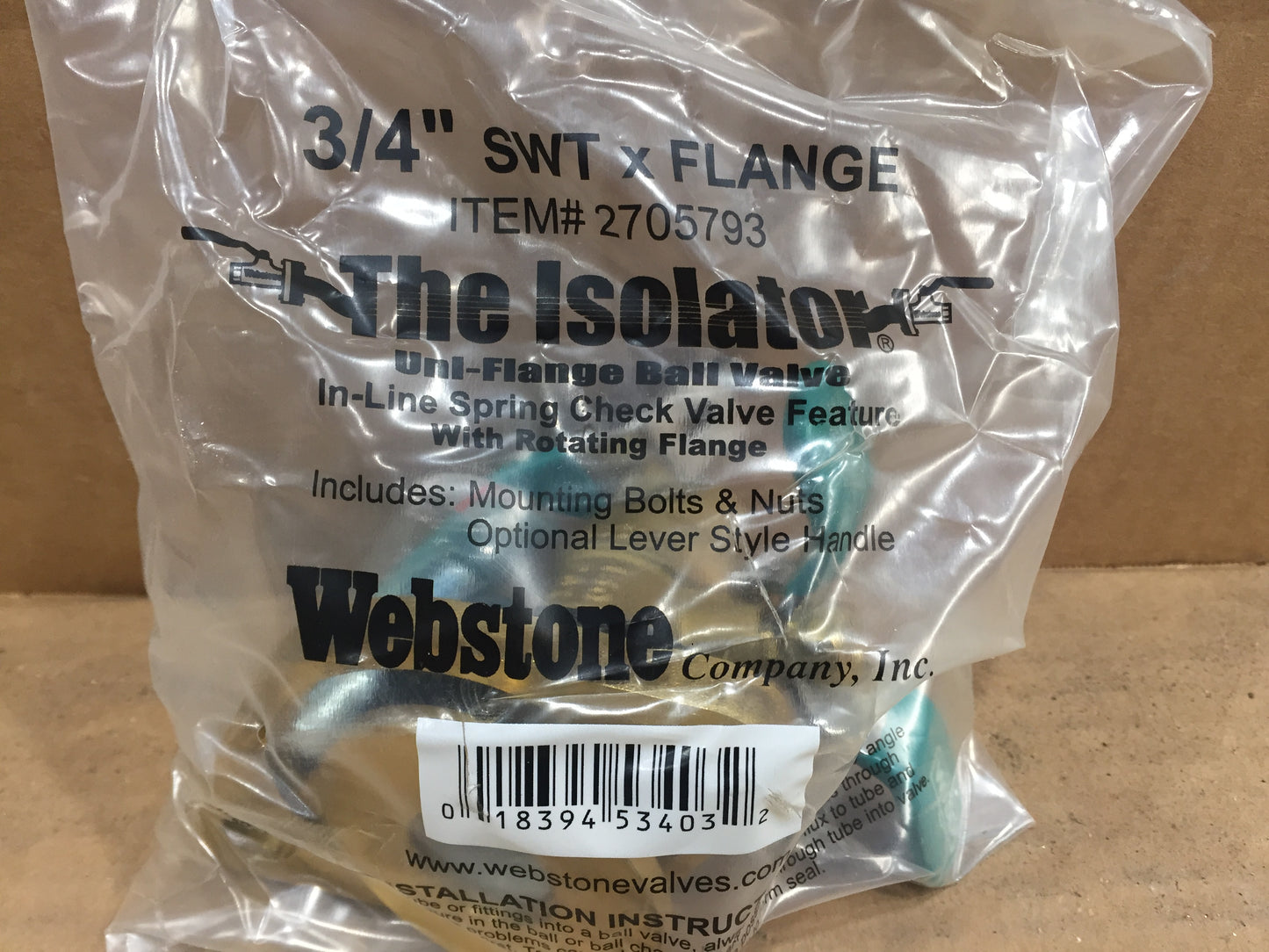 3/4" Sweat X Flange w/In-Line Spring Check Valve; Includes Mounting Bolts, Nuts and Optional Lever Style Handle, Dims: H-5", W-5", L-5", Weight 3Lbs, Mfg Box