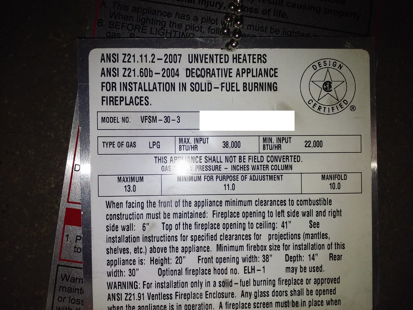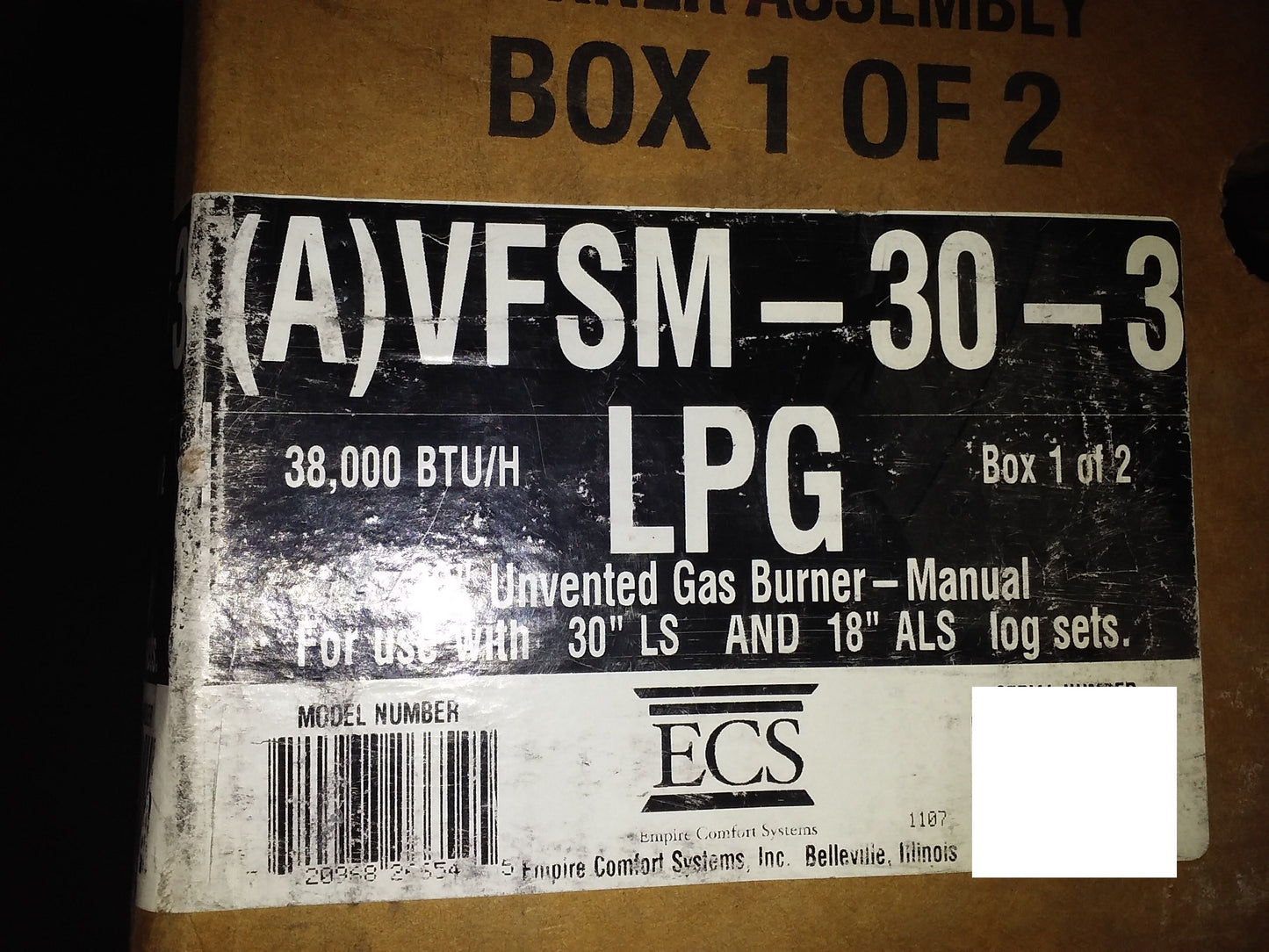 38,000 BTU UNVENTED LP GAS BURNER, GAS CONNECTION:1/2" N.P.T., IGNITION:PILOT, INPUT/OUTPUT BTU'S:38,000/22,000, DIMS:8"H X 16"W X 33"D, WEIGHT:28 LBS, MFG BOX, MADE IN USA.