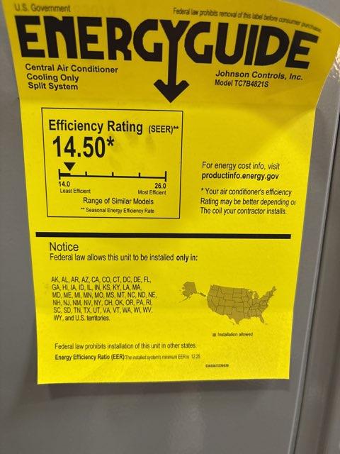 3/8" X 7/8", Connection Type: Sweat, Factory Charge: 6 lbs 11 oz, Type: Air, Dimensions: 39-1/2''H x 38''W x 34-1/4''D, Weight: 220 lbs