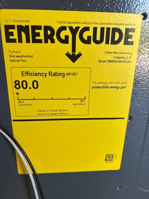 40,000 BTU Low NOx Single-Stage Upflow/Horizontal ECM Multi Speed Gas Furnace 80% 115/60/1 CFM: 1200