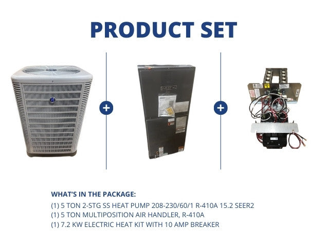 5 Ton AC/HP Air Handler, Airflow: Multiposition, Volts: 208-240, Hertz: 60, Phase: 1, CFM: 1877, Refrigerant: R-410A, Motor Type: ECM, Metering Device: TXV, Connection Size: Suction-7/8", Liquid-3/8", Type: Air Source, Dimensions: 55-1/2''H X 24-1/2''W X 21-11/16''D, Weight: 161 lbs Paired with: