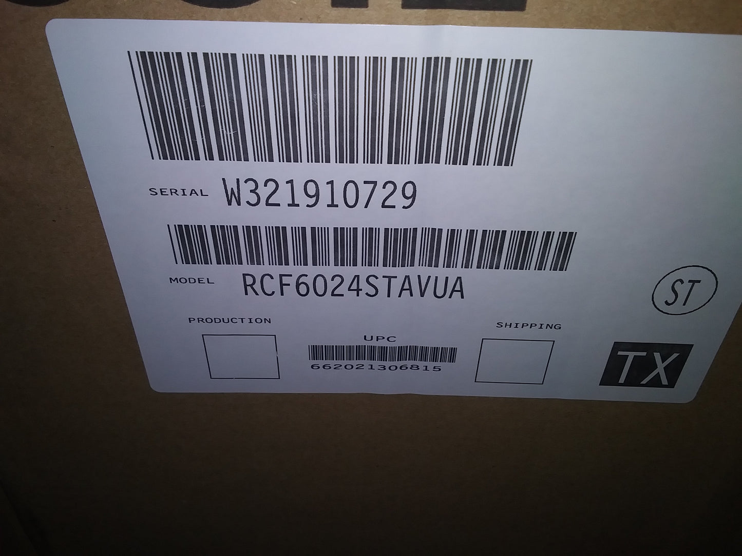 Manufacturer Item # :RCF6024STAVUA