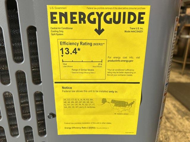 3/8"X7/8", Connection Type: Sweat, Factory Charge: 6 lbs 7 oz, Type: Air, Dimensions: 28-5/8''H x 34-1/4''W x 34-1/4''D, Weight: 193 lbs **This Model Regulated For Sale/Installation In The North Region Only** Minor Cosmetic Damage Dent On Side Of Unit.