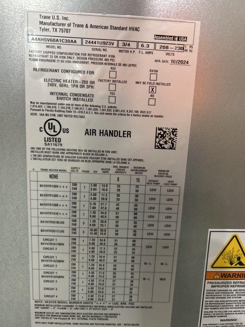 8 Kw Electric Heat Kit With Breaker, Volts: 240, Hertz: 60, Phase: 1, Amps: 32, Mfg. Box Made in USA