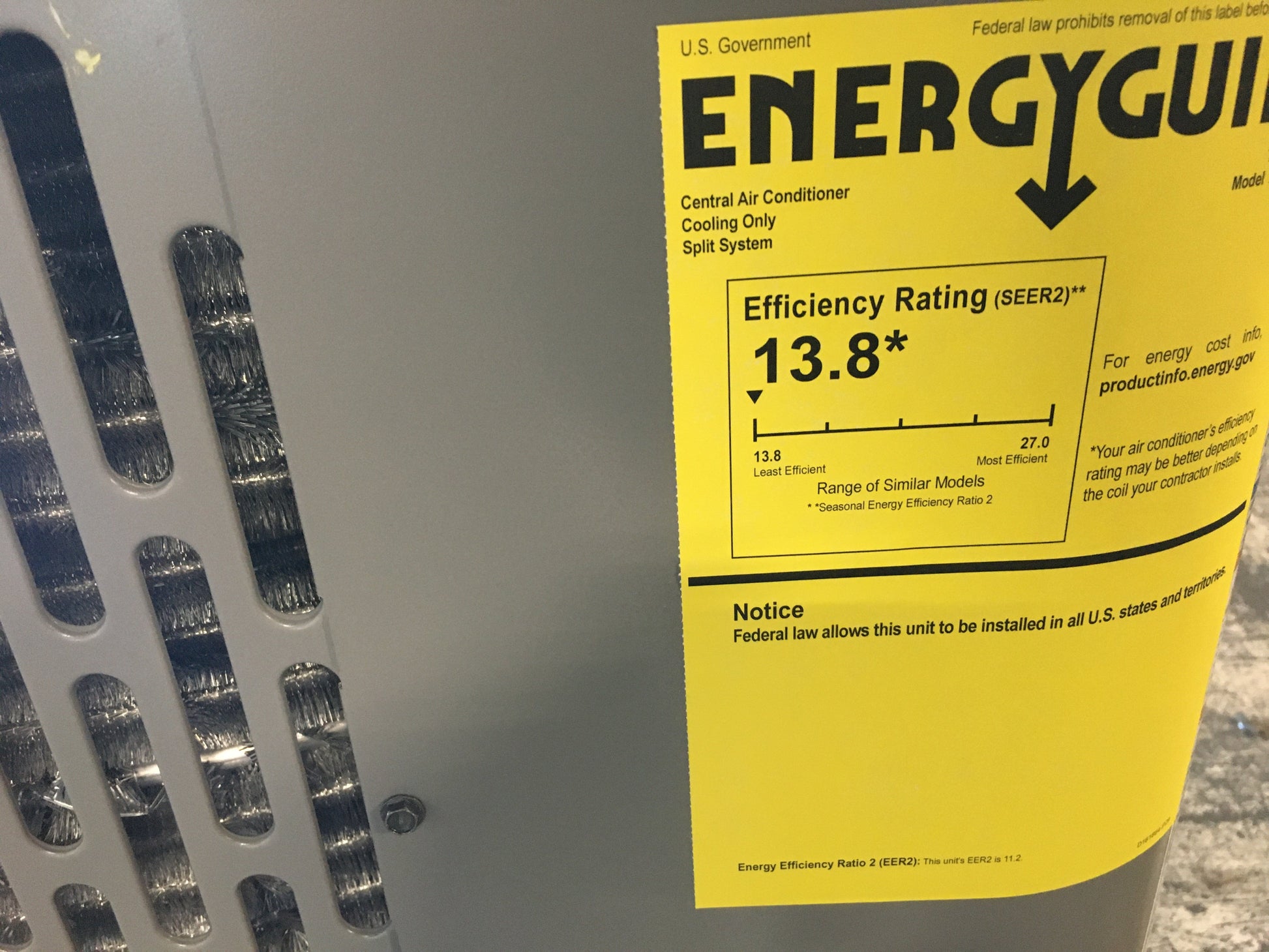 13.8, Stage: 1, Refrigerant: R-410A, Connection Size: 3/8" X 7/8", Connection Type: Sweat, Factory Charge: 9Lbs 8Ozs, Type: Air, Dimensions: 44.6"H X 34.3"W X 34.3"D, Weight: 252Lbs, In Mfg. Box, Made In Mexico