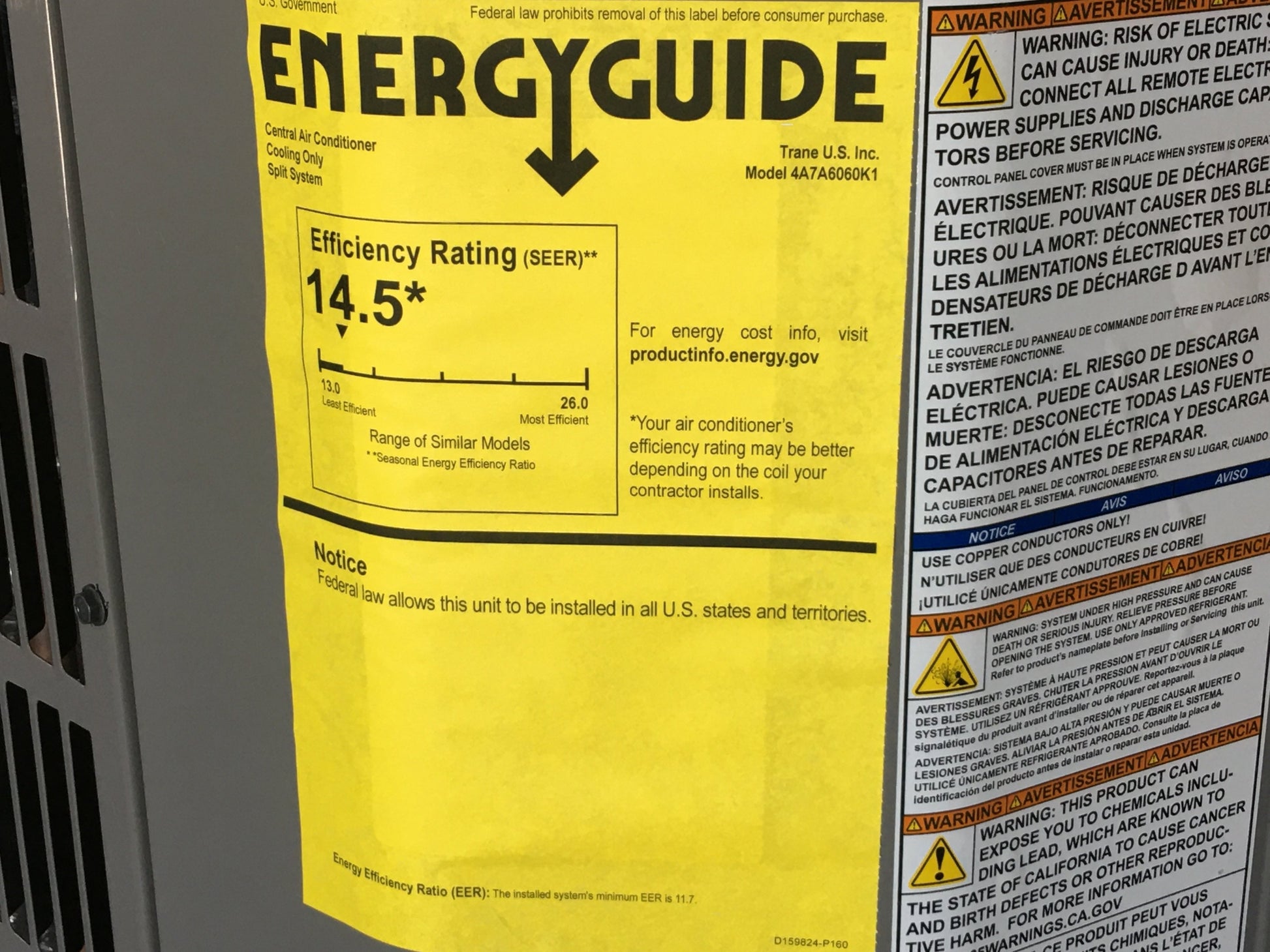5 Ton Split-System Air Conditioner, Circuit Voltage: 208-230, Hertz: 60, Phase: 1, Department Of Energy Guide Seer: 16, Stage: Single, Refrigerant: R-410A, Connection Size: 3/8"X7/8", Connection Type: Sweat, Factory Charge: 9 Lbs 8 Oz, Type: Air, Dimensions: 45-1/8"H X 34-1/4"W X 37-1/4"D, Weight: 252 Lbs