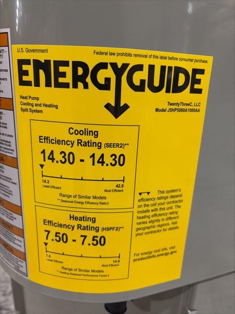 5 Ton Single Stage Split-System Heat Pump, Circuit Voltage: 208-230, Hertz: 60, Phase: 1, Department of Energy Guide SEER2: 14.3, Stage: Single, Refrigerant: R454B, Connection Size: 3/8"X1-1/8", Connection Type: Sweat, Factory Charge: 6 lbs 15 oz, Type: Air, Dimensions: 33-3/16''H x 29-1/8''W x 29-1/8''D, Weight: 208 lbs ***Unit includes a Manufacture Warranty, register your unit with the Manufacturer for details*** Paired with:
