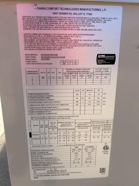 5 Ton Two Stage Convertible Natural Gas/Electric Packaged Unit, Volts: 460, Hertz: 60, Phase: 3, Refrigerant: R410A, Factory Charge: 150 oz, EER2: 11.9, Department of Energy Guide SEER2 (Range):