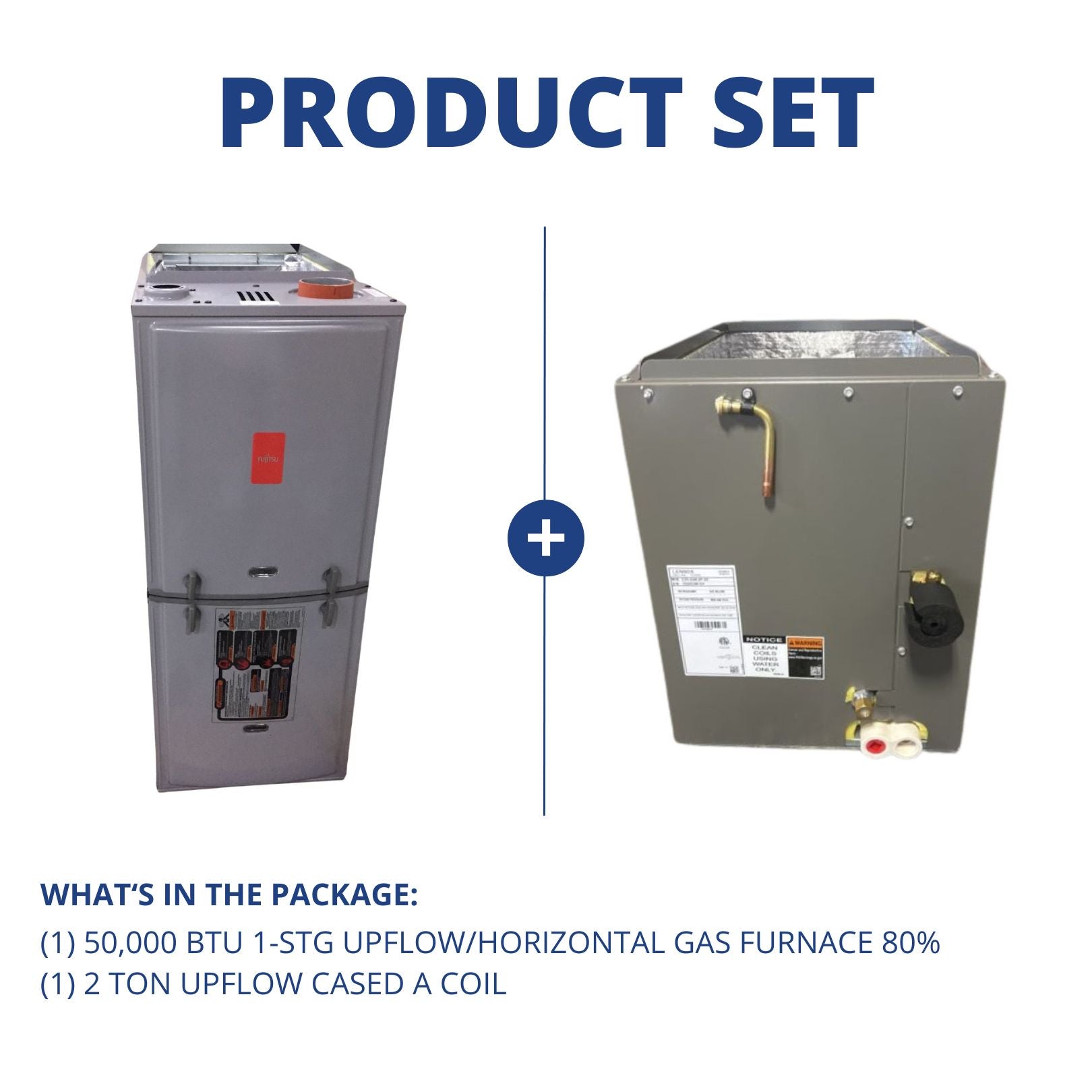 1305, Stage: Single, Speed: Multi, Motor Type: ECM, BTU Input: 50,000, BTU Output: 40,000, Dimensions: 34"H X 14"W X 29-19/32"D Propane Conversion Kit: RXGJ-FP15 (Not Included) **Unit includes a Manufacture Warranty through June of 2029, No Registration Required** Paired with: 2 Ton Cased A Coil, Airflow: Upflow, CFM: 1200, Metering Device: Orifice, Connection Type: Refrigerant: R410A, Connection Size: 3/8" X 3/4", Drain Pan: Plastic, Dimensions: 19-1/4''H X 14-1/2''W X 21''D, Weight: 38 lbs ***Unit includes a Manufacture Warranty, register your unit with the Manufacturer for details***