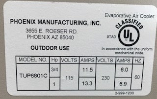 Aerocool Trophy Residential Evaporative Cooler/Less Motor (Motor Not Included), Airflow:Up Draft, CFM:5800-6800, Water Supply Line:1/4" O.D, Drain Line:3/4" Male Pipe Thread, Pad Frame:8" Media Type, Supply Dims:19-3/4"H X 19-3/4"W, Dims:34-1/4"H X 42"W X 45"D, Weight:200 Pounds, In Mfg Box, Made In USA.