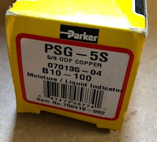 5/8"ODF SWEAT WET SIGHT GLASS MOISTURE INDICATOR, REFRIGERANTS:R-22, R-410A, R-12, R-134a, R-404A, R-407C, R-502, R-507, INLET/OUTLET:5/8"ODF X 5/8"ODF SWEAT, M.R.P:650 PSIG, DIMENSIONS:1-3/4"H X 5"W X 1-1/2"D, WEIGHT:8 OUNCES, IN MFG BOX, MADE IN USA. **(ALT# 070135-04)**