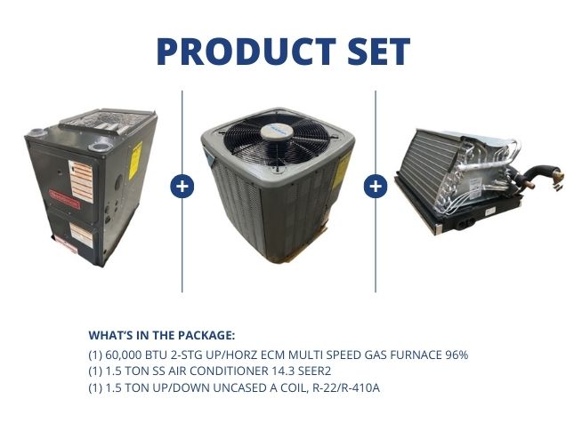 60,000 BTU 2-Stg Up/Horz Gas Furnace 96%, 1.5 Ton SS AC 14.3 SEER2 with 1.5 Ton Up/Down Uncased Coil