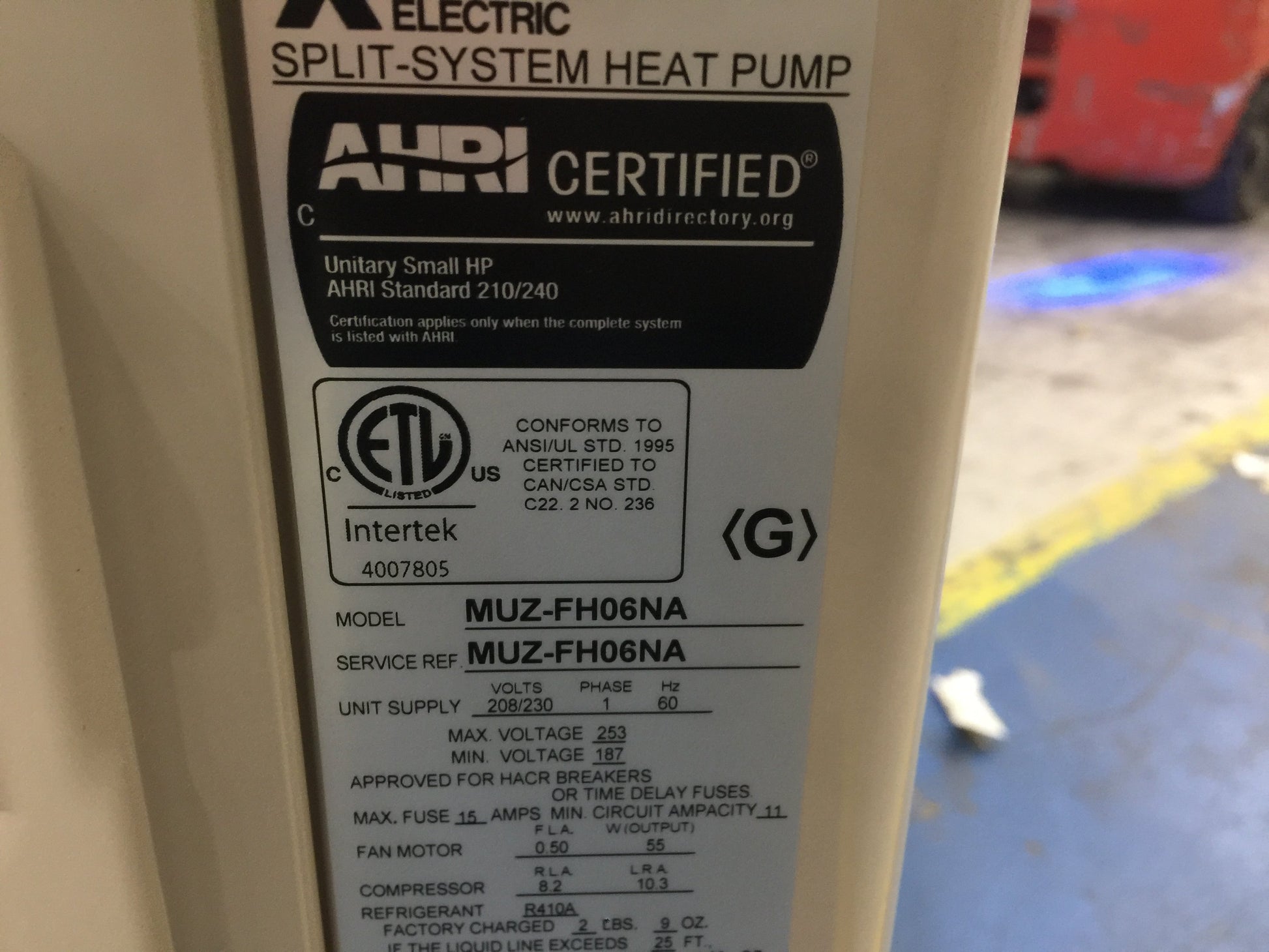 14,000, Dims: 215/8"H X 311/2"W X 111/4"D, Weight: 80 Lbs, In Mfg Box, Made In Mexico. Outdoor Unit Only - For Use With Indoor Model MSZ-FH06NA - (Not Included)