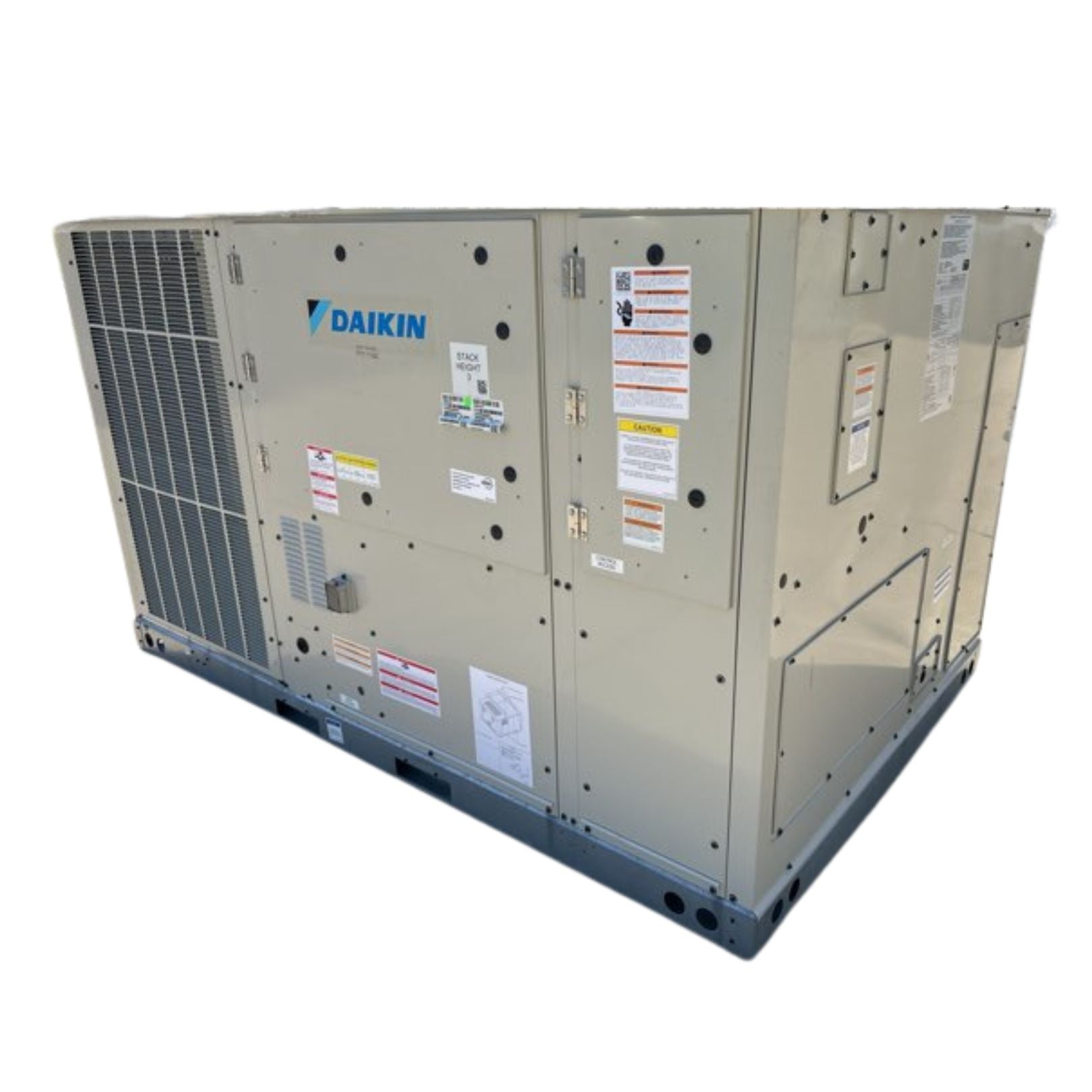 7.5 Ton Two Stage Convertible Natural Gas/Electric Packaged Unit, Volts: 208-230, Hertz: 60, Phase: 3, Refrigerant: R410A, Factory Charge: 67/65.4 oz Dual Circuit, EER: 11.2, CFM: 3020, BTU Input: 180,000, BTU Output: 145,800, Cooling BTU: 90,000, Heating BTU: 180,000, Overall Dims: 54-5/8''H X 93-3/4''W X 60-3/8''D, Weight: 1050 lbs