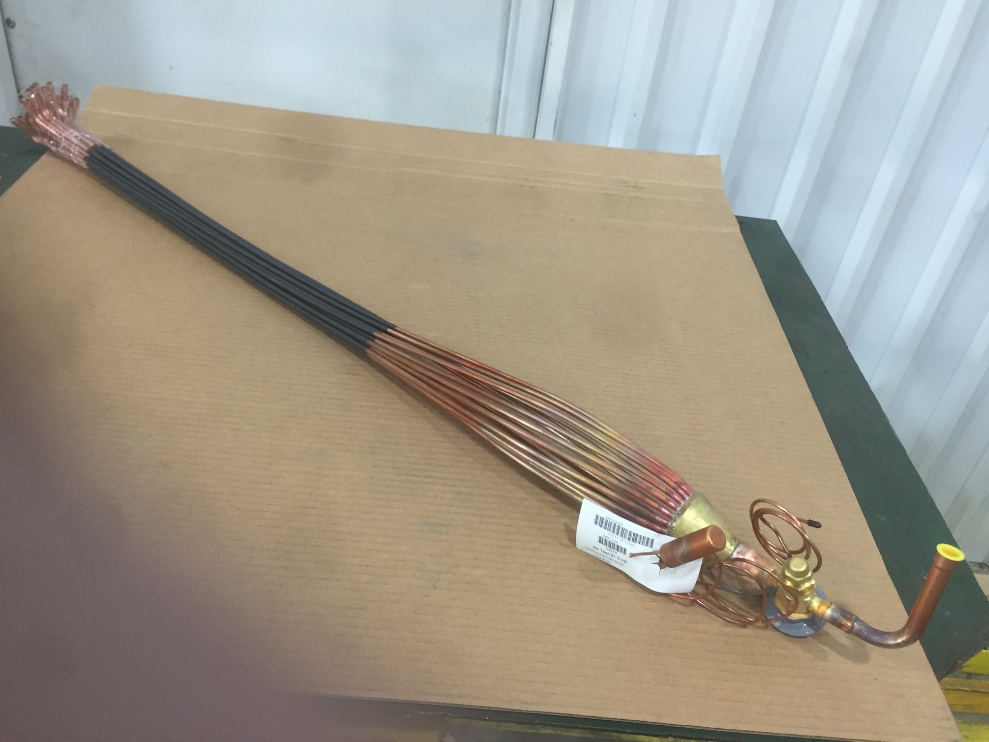 8 Ton Thermal Expansion Valve Assembly of Straight Tube, Dims; H-46" W-3" D-3", Inlet: 1/2", Outlets: 1/4", Connection Type: Sweat, Refigerent: R-410A, Mfg. Box, Made in USA