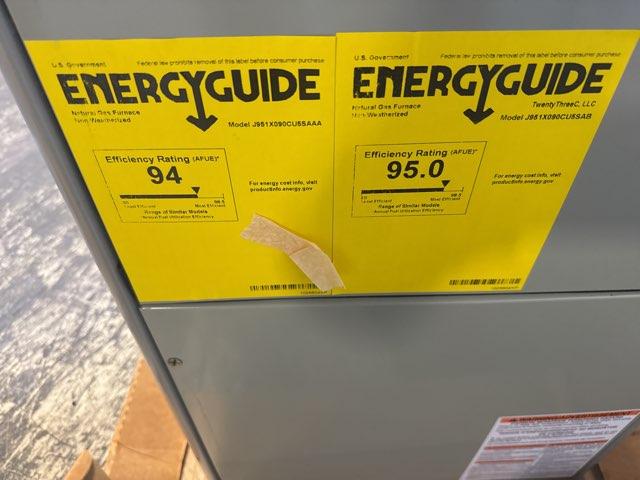 90,000 BTU Upflow Horizontal Natural Gas Furnace, Efficiency: 95, Volts: 115, Hertz: 60, Phase:1 , Cfm: 2000, Stage: 1, Speed: 5 Speed, Motor Type: Ecm, BTU Input: 85,000, BTU Output: 81,000, Dimensions: 34-1/2"H X 21"W X 28"D, Plenum Opening Dimensions: 19-1/2" X 19", Weight: 134Lbs, Made In Mexico, In Mfg Box **Propane Conversion Kit: 905028 (Not Included)** minor cosmetic damage, dent on top corner of unit
