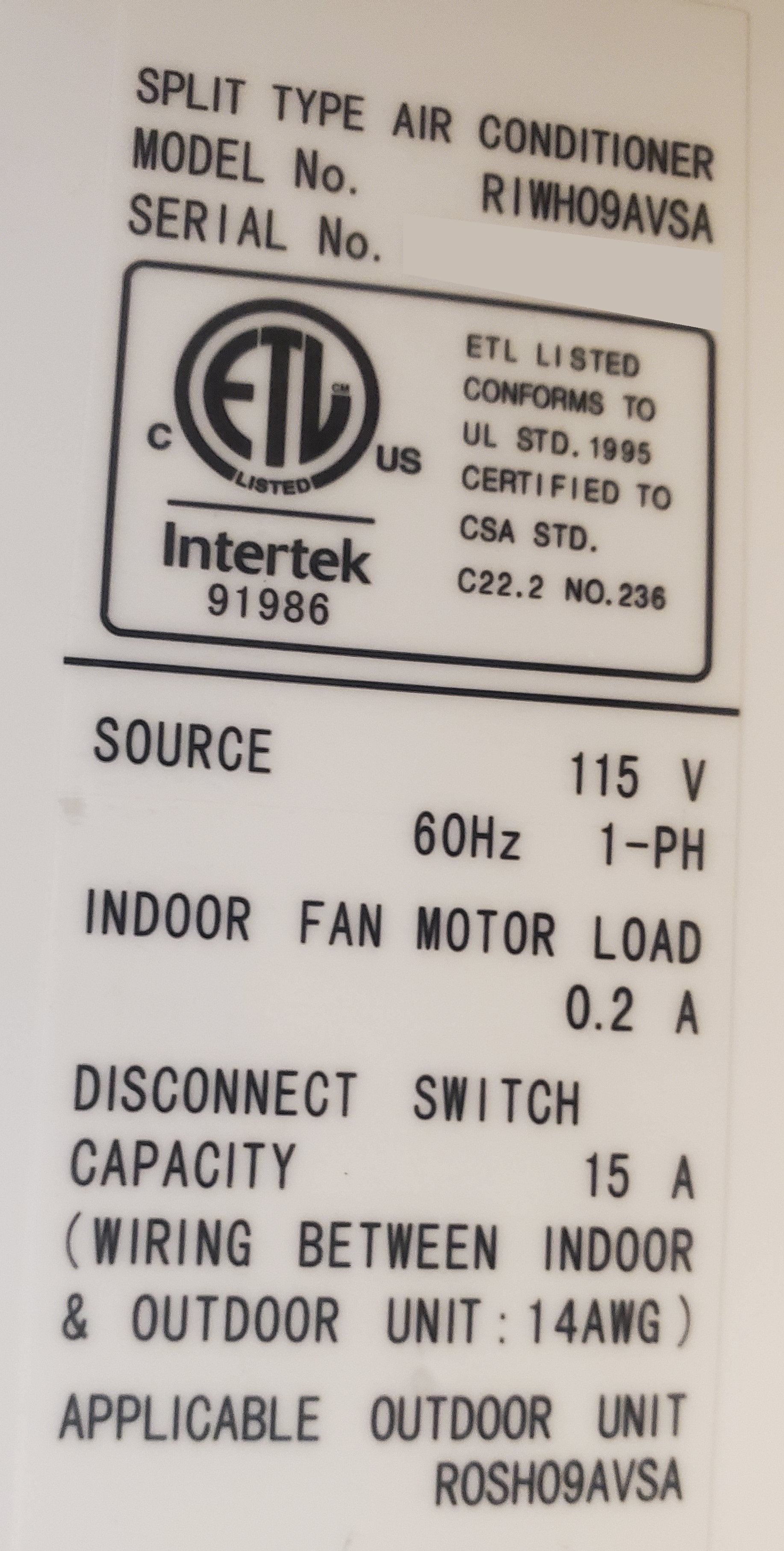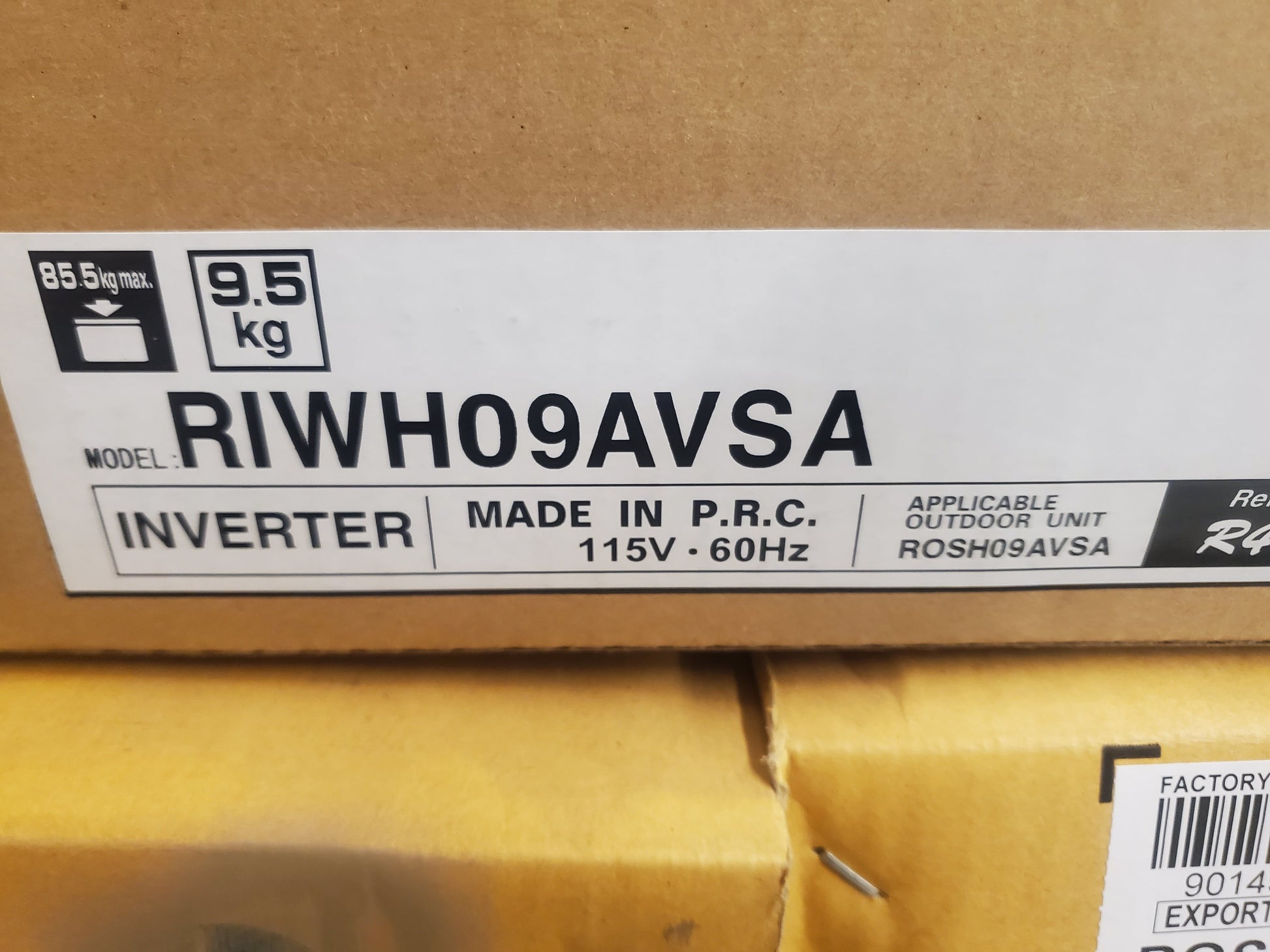 9,000 BTU Wall Mounted Inverter Indoor Mini-Split Heat Pump Unit, Volts:115, Hertz:60, Phase:1, CFM:436, SEER:16, Refrigerant:R-410A, Cooling BTU's:9,000, Heating BTU's:10,000, Connection:1/4" X 3/8" Flare, Dims:8"H X 32-1/2"W X 10-1/2"D, Weight:32 Lbs, In Mfg Box, Made In PRC.Remote(Included) (For Use With Outdoor Unit ROSH09AVSA (Not Included) SCL 199720)