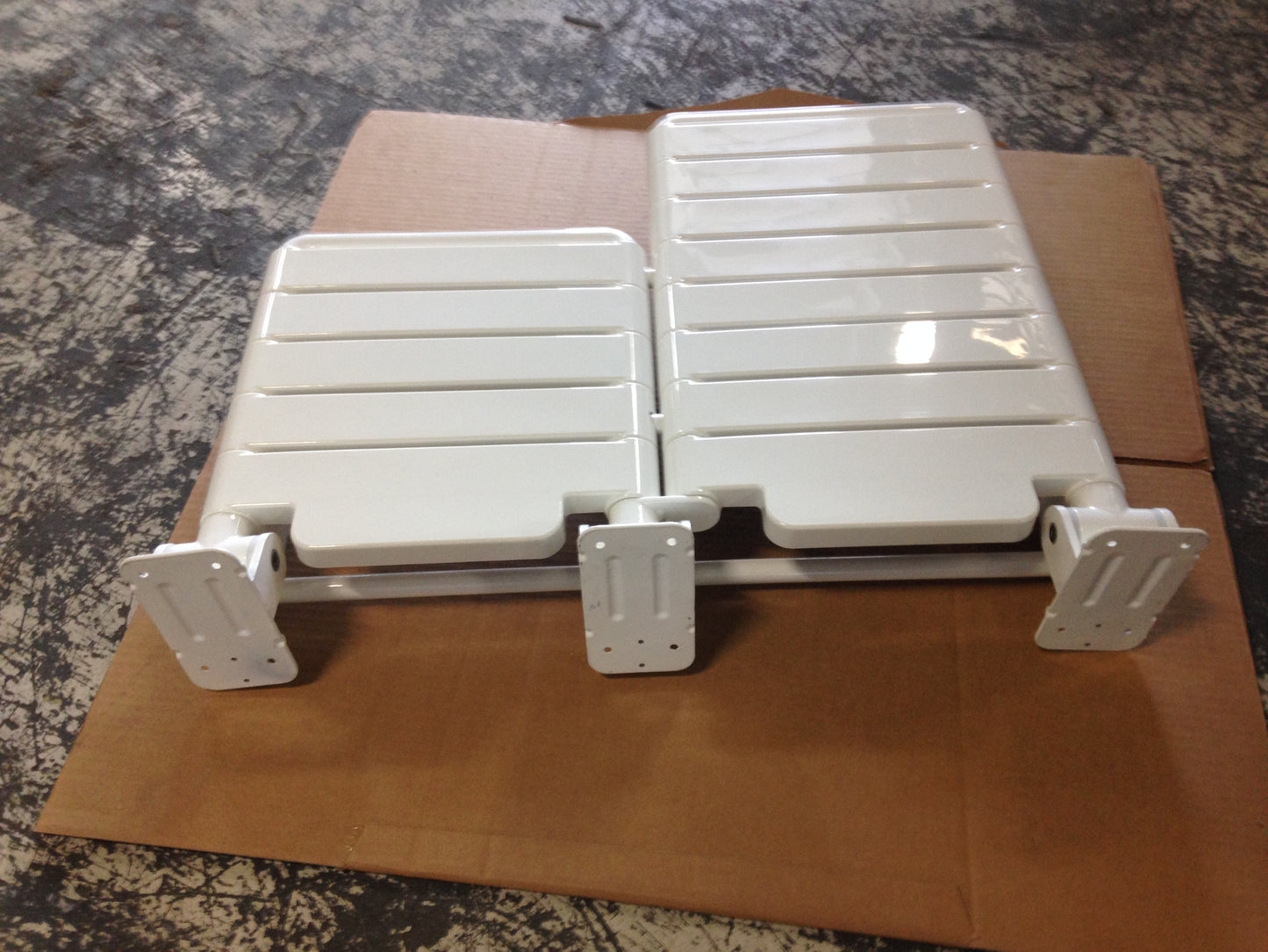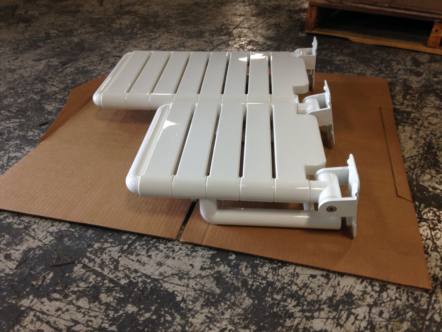 Ada Shower Seat Cantilevered Right Hand, White, Material:Nylon, Wall Mount, Max. Weight Capacity:500 Lbs, In Mfg Box, Made In China.