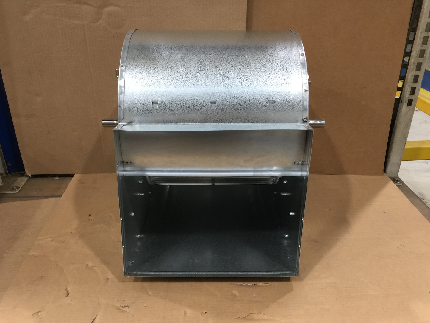 Blower Assembly; Less Motor, Material: Galvanized, Rotation: Clockwise, Overall Dims: H-17", W-13", L-17", Bore: 3/4", Inner Dims: 13" X 11.5", Weight:15Lbs, Mfg Box, Origin: Unknown