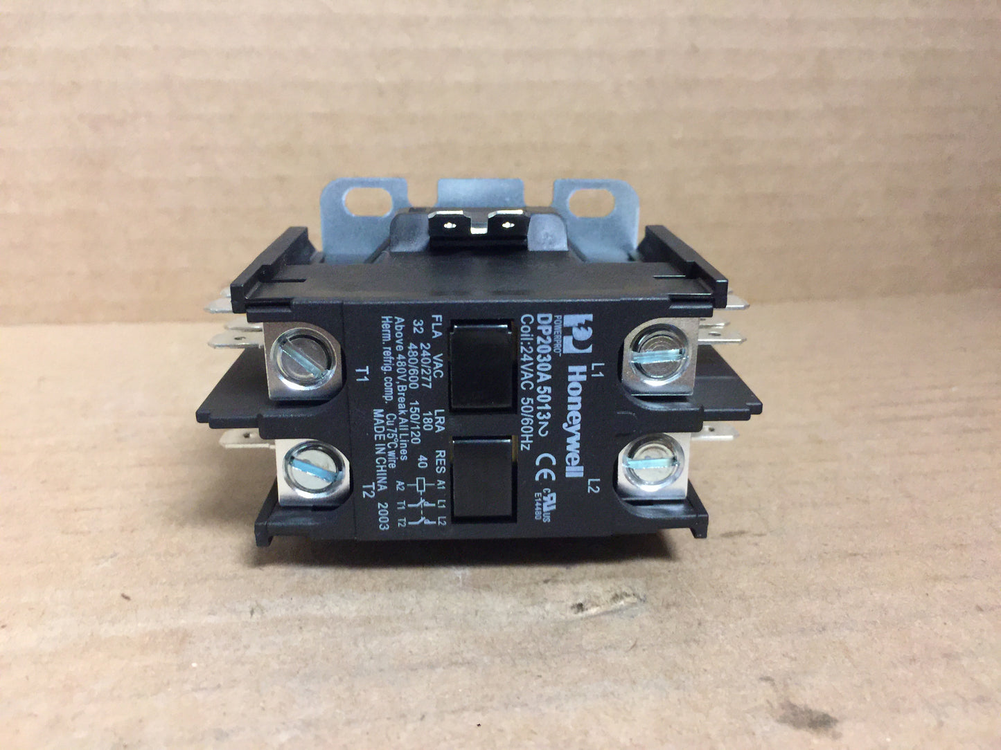 Definite Purpose Contactor; 2 Pole, 24 VAC, 50/60Hz, 32 Amp FLA, 40 Amp Resistive, Dims: H-2", W-2", L-3", Weight: 1Lb, Mfg Box, Made In China