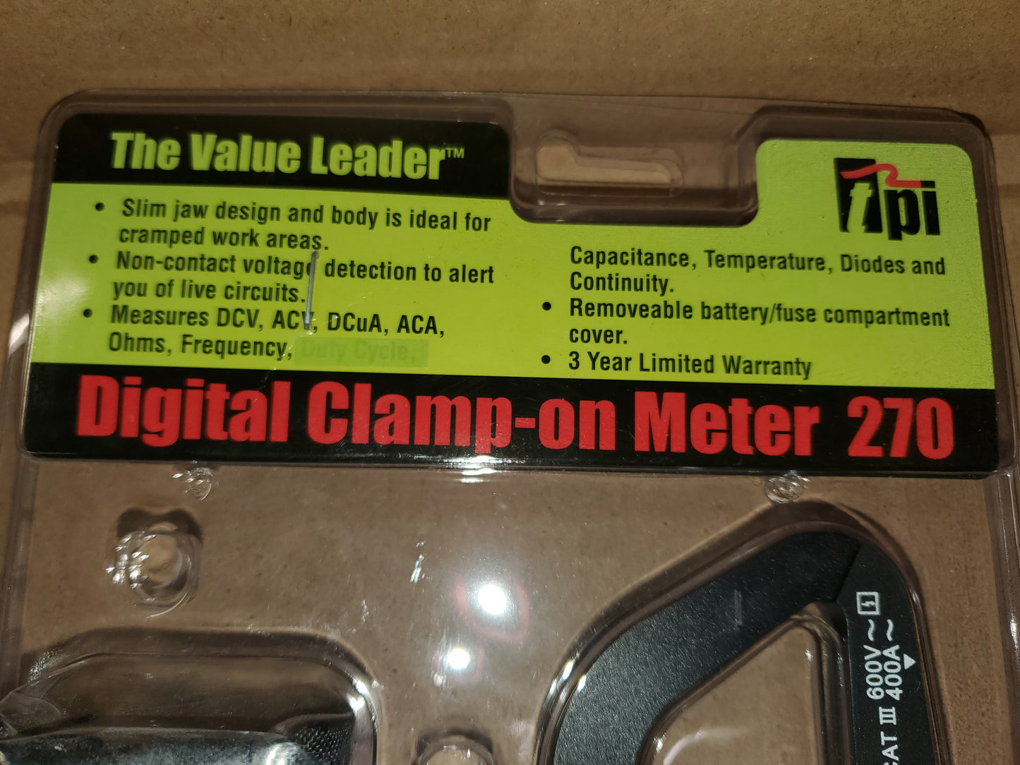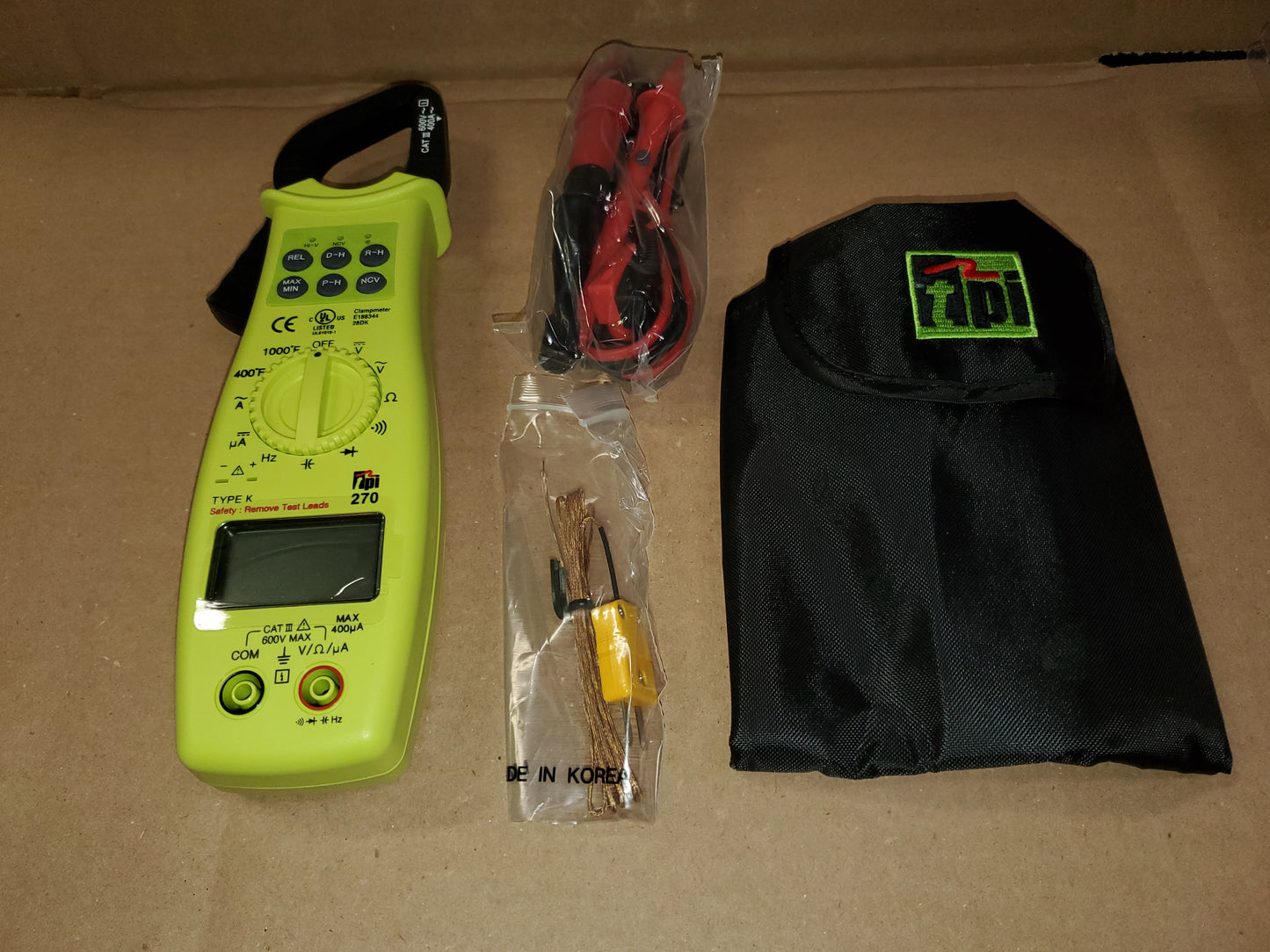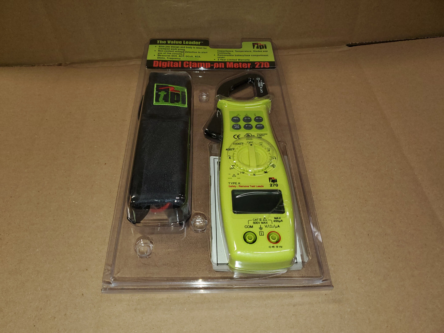 Digital Clamp-On Meter 270, Slim Jaw Design and Body Is Ideal For Cramped Work Areas, Non-Contact Voltage Detection To Alert You of Live Circuits, Measures DCV, ACV, DCUA, ACA, OHMS, Frequency, Capacitance, Temperature, Diodes and Continuity, Removeable Battery/Fuse Compartment Cover, Includes: Soft Pouch, Test Lead Set, Temperature Probe and Clamp Meter,Origin: Korea