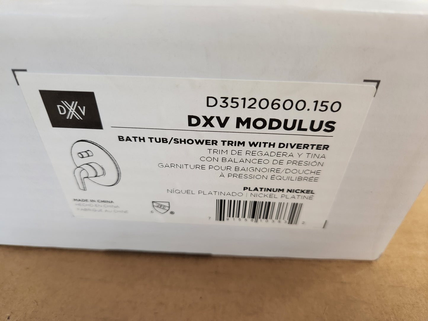 DXV Modulus Platinum Nickel Bath Tub/Shower Trim with Diverter, Weight:4 Lbs 2oz Made In China ***No Additional Parts or Accessories Are Included, Valve and/or Cartridge Is Not Included.***