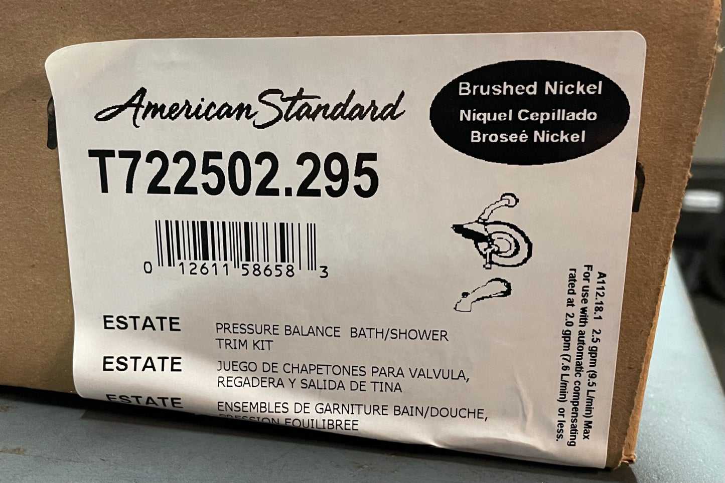 Estate Brushed Nickel Pressure Balance Bath/Shower Trim Kit; Weight: 5 lbs, In Mfg Box, Made In Mexico