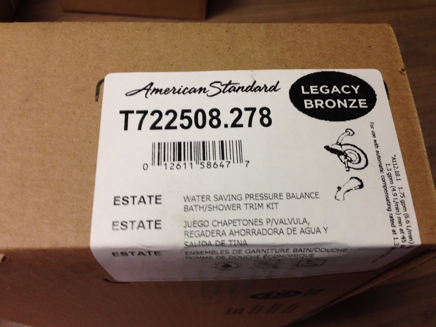 Estate Water Saving Pressure Balance Bath/Shower Trim Kit, Flow Rate: 1.75 Gpm, Finish: Legacy Bronze, Mount: Wall, 3 Function Shower Head, Metal Lever Handle, Origin: Mexico (See Lots For Details)