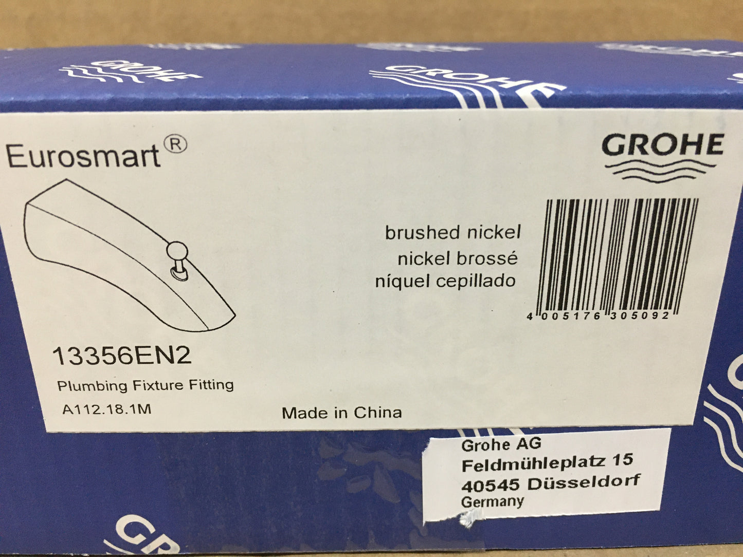 Eurosmart Diverter Tub Spout, Color: Brushed Nickel, Spout Only, In Manufactured Box, Made In China. Dims- 2.5X6.5X2.5