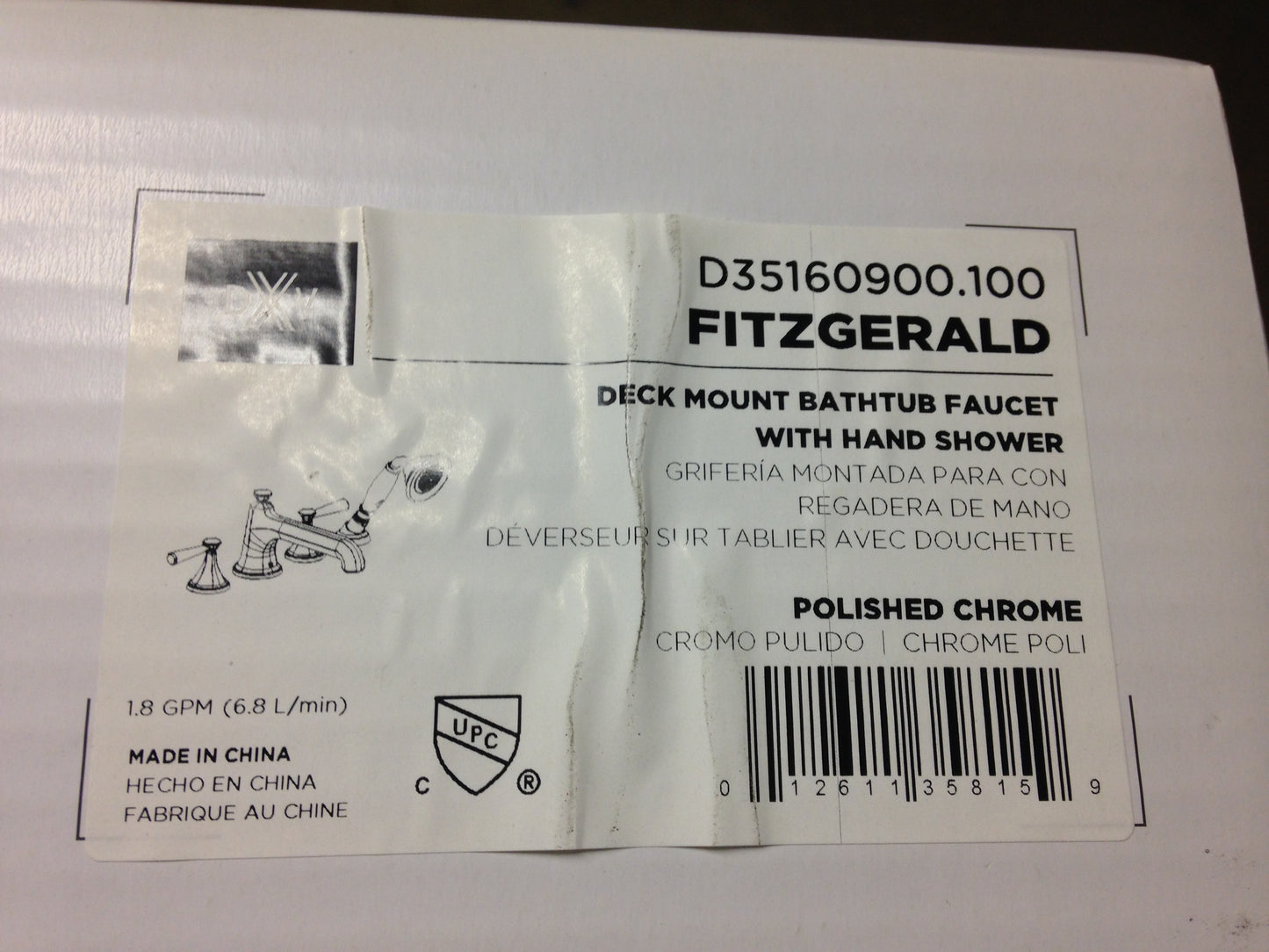 Fitzgerald Deck Mount Bathtub Faucet With Hand Shower, Polished Chrome, Weight:7 Lbs 8 Oz, In Mfg Box, Made In China.