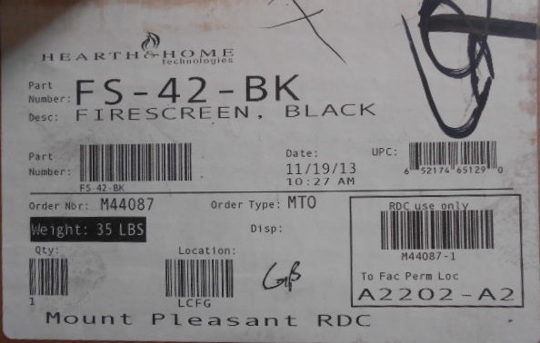 FRONT FIRESCREEN BLACK, DIMS:40-1/2"H X 46-3/4"W X 3/4"D, WEIGHT:30LBS, ORIGIN:UNKNOWN