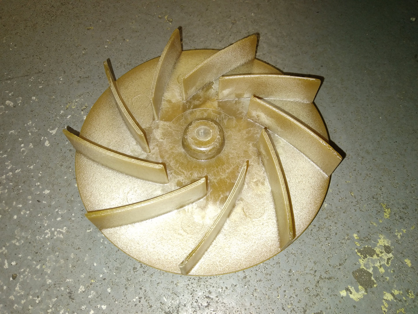 Induced Fan Blower Wheel, Material:Plastic, Bore:1/4", Set Screw, Orientation:Concave, Rotation:Clockwise, Dims:1-7/8"H X 7"Dia, Weight:3oz, Origin:USA, In Bag.