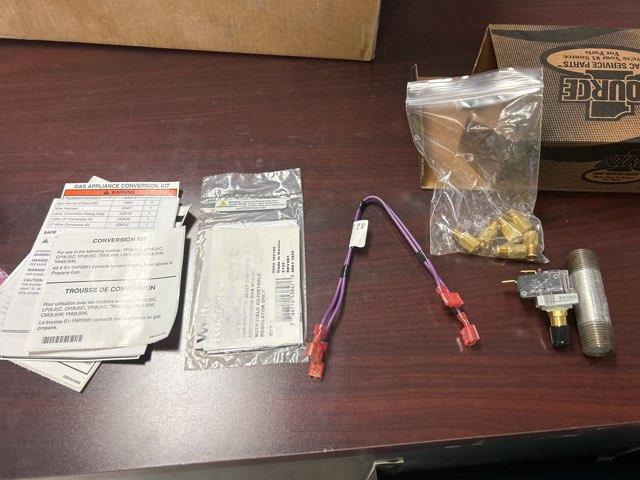 The Application Works with White-Rodgers 36J27 Gas Valves. Packaged Contains (1) 17471 - Gas Line Pressure Switch, (1) 18095 - Tapped Gas Pipe Nipple, (1) 528014 - Kit Installation Instruction, (6) 18081 - Main Burner Orifices #55, (1) 20461 - Wire Harness, (1) 528016 - Label, Conversion Rating Plate, (1) 255424 - Label, LP Conversion Kit, (1) 528012 - LP Valve Conversion Kit.
