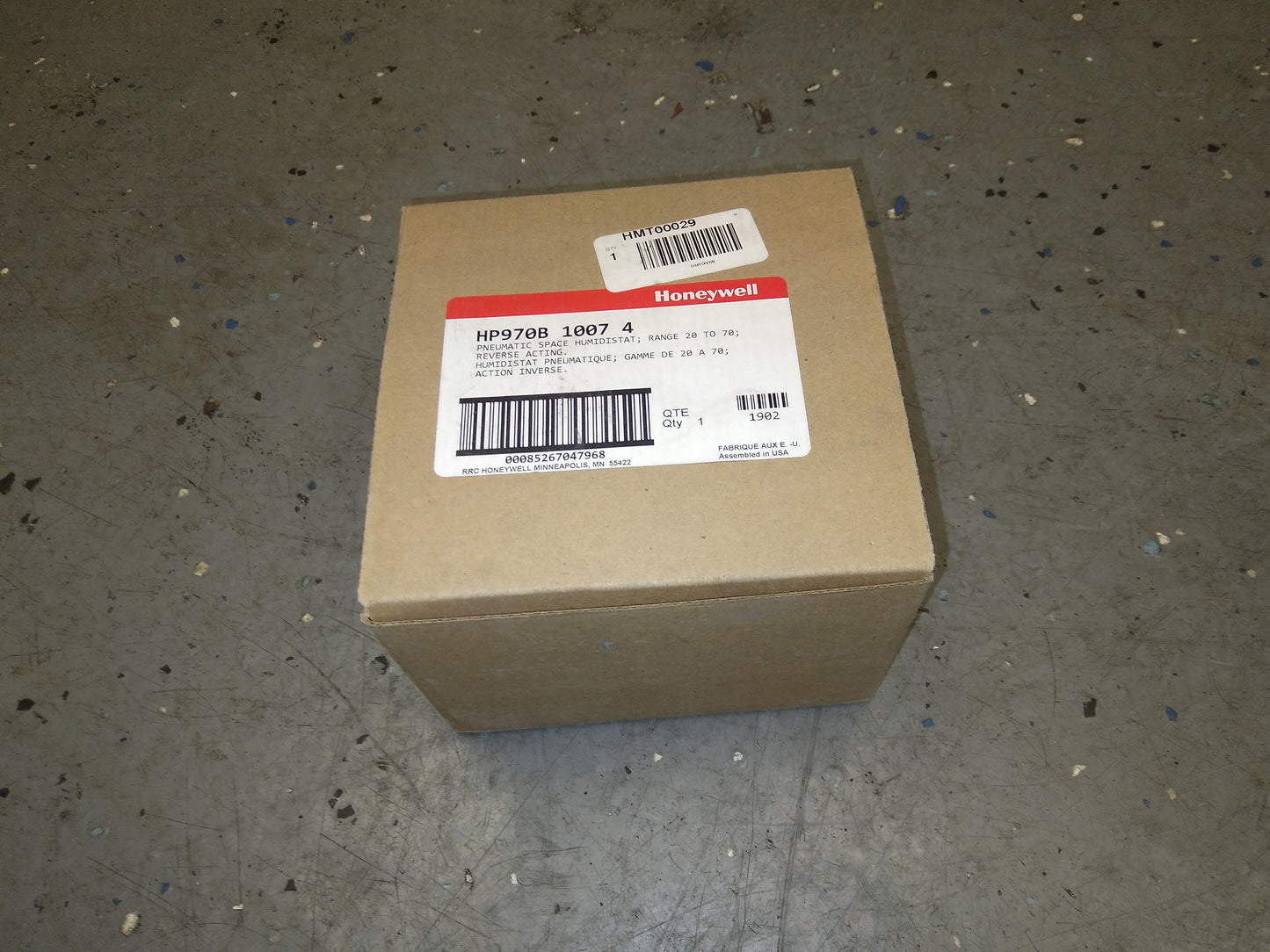 PNEUMATIC SPACE HUMIDISTAT, RANGE: 20 TO 70 DEGREE FAHRENHEIT, REVERSE ACTING, WEIGHT:1 LB, DIMS:3"H X 1-3/4"W X 1-5/8"D, WITH PLASTIC COVER, ORIGIN:USA, IN MFG BOX.