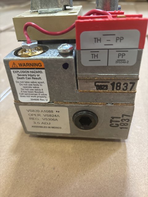 750 mV Standard Opening Gas Valve Standing Pilot Combination Gas Control, Off-Pilot-On Lighting Sequence, Capacity: 34,000 to 425,000 BTU, 1/8" NPT, Pressure Regulator Type: Standard Opening, Coil Voltage: 750, Nominal Size: 3/4", Ignition Type: Standing Pilot, Pilot Gas Outlet: 1/4", Pressure Rating: 1/2 psi, Ambient Temperature Range: 32° to 175° F, Gas Type: Natural and LP, Weight: 2.8 lbs, Dimensions: 4-3/4" H x 4-1/16" W x 3-3/16" D