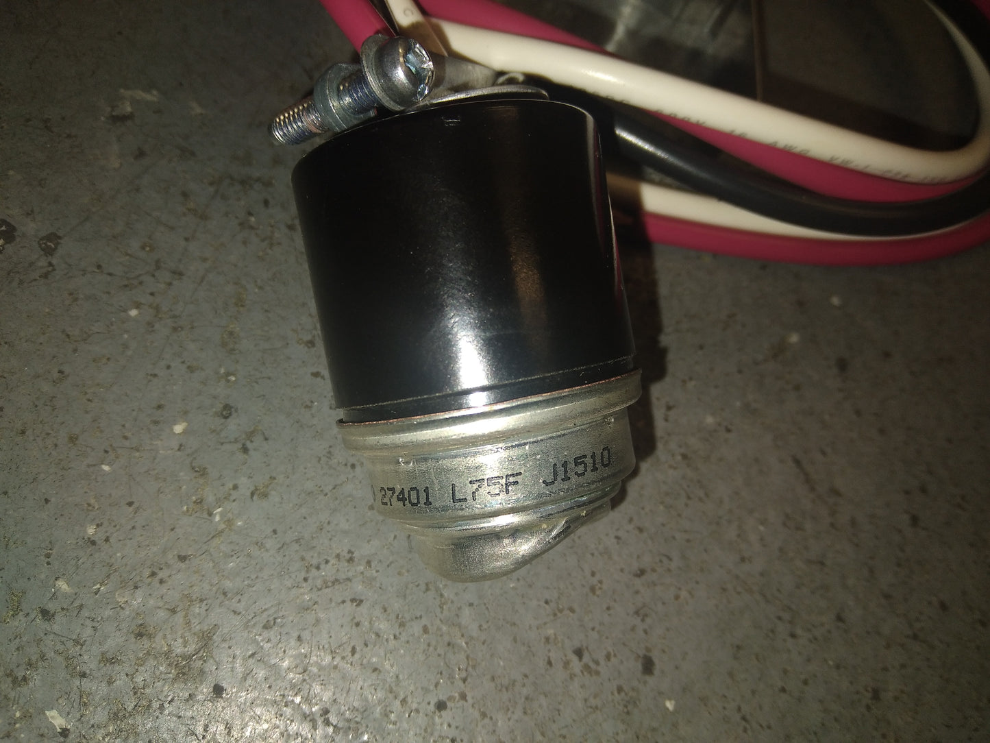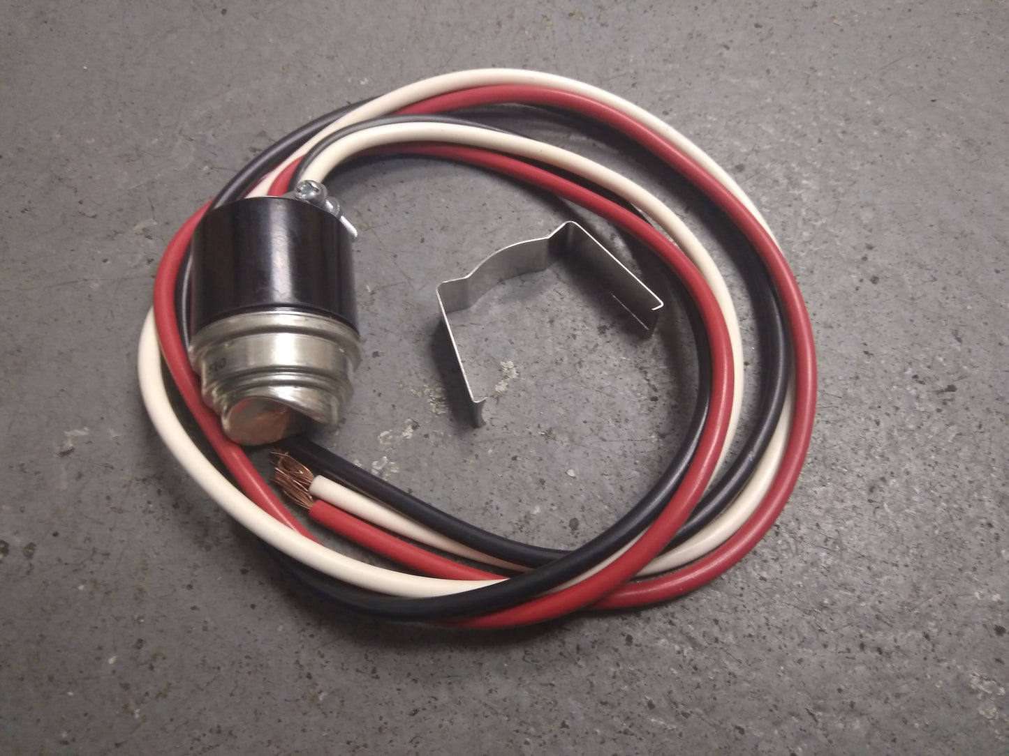 SPST Temperature Control with Tube Mounting Bracket, Opens at 65F, Closes at 75F, Differential:12F, Fits .88" Tube, 3-Wire 33" Leads, Dims:1-1/2"H X 2"W, Weight:4oz, Origin:USA, In Box.