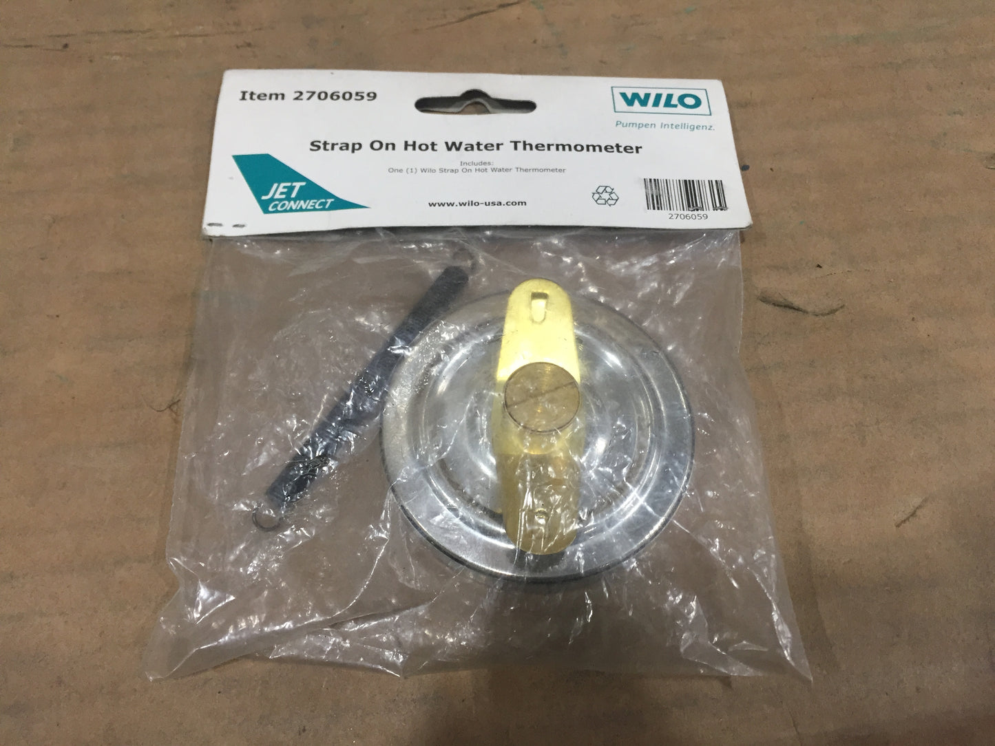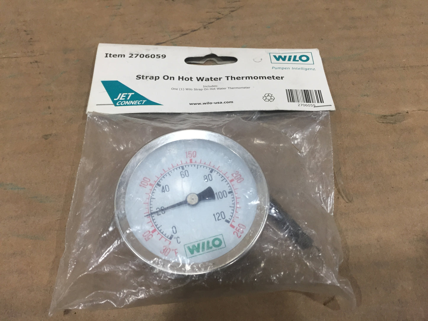 STRAP ON HOT WATER THERMOMETER; 30-250 DEGREE F, DIMS: H-2", W-2", L-3", WEIGHT 1LB, BOXED, MADE IN USA